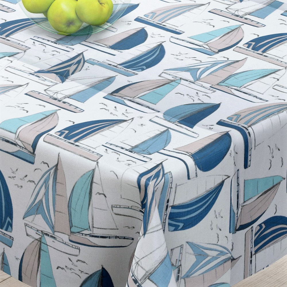 Larmor - Akrylduk med små blå seilskuter - 155 cm bred