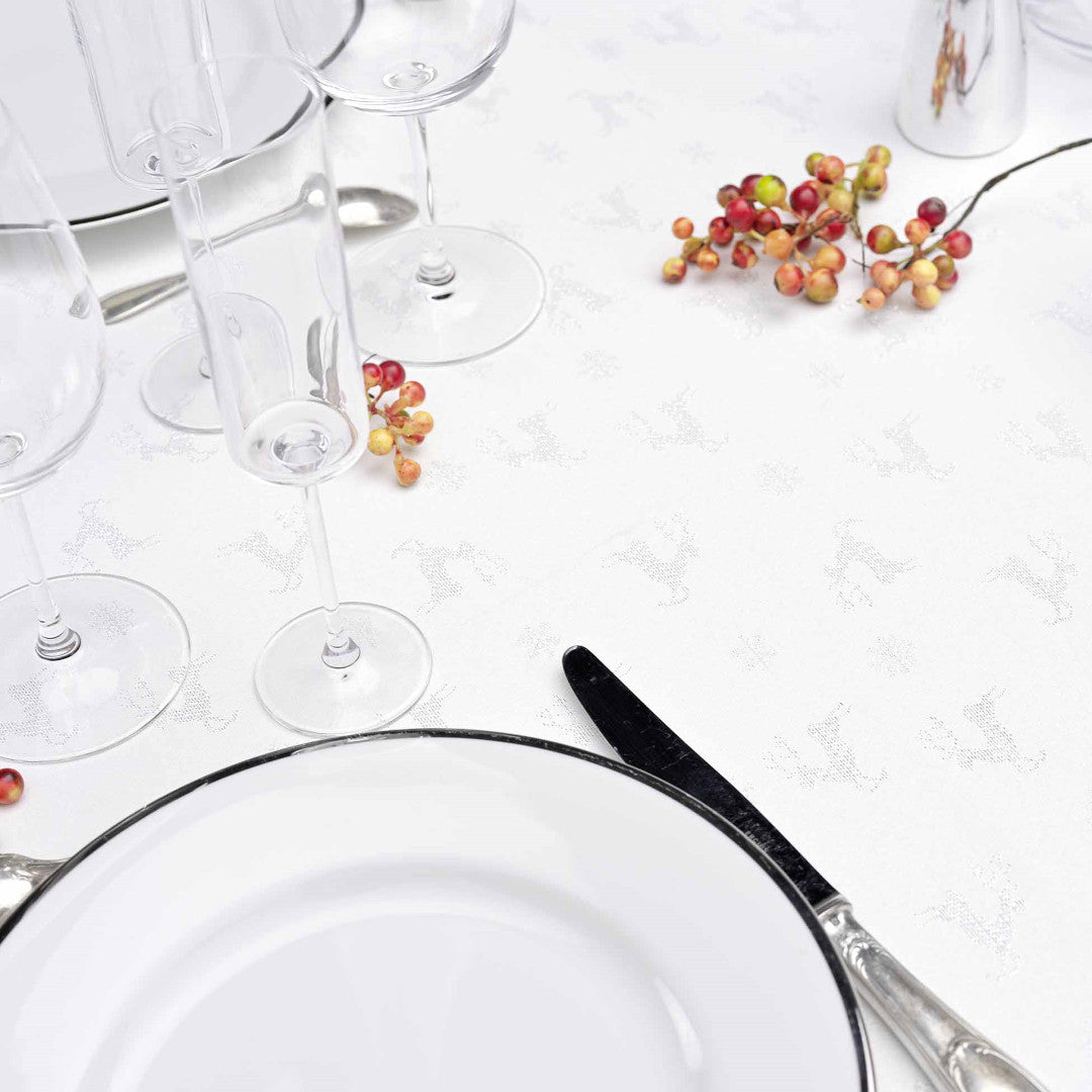 Les Rennes Metallic Hvit 140 x 250 cm, rektangulær juleduk med flekkavvisende behandling