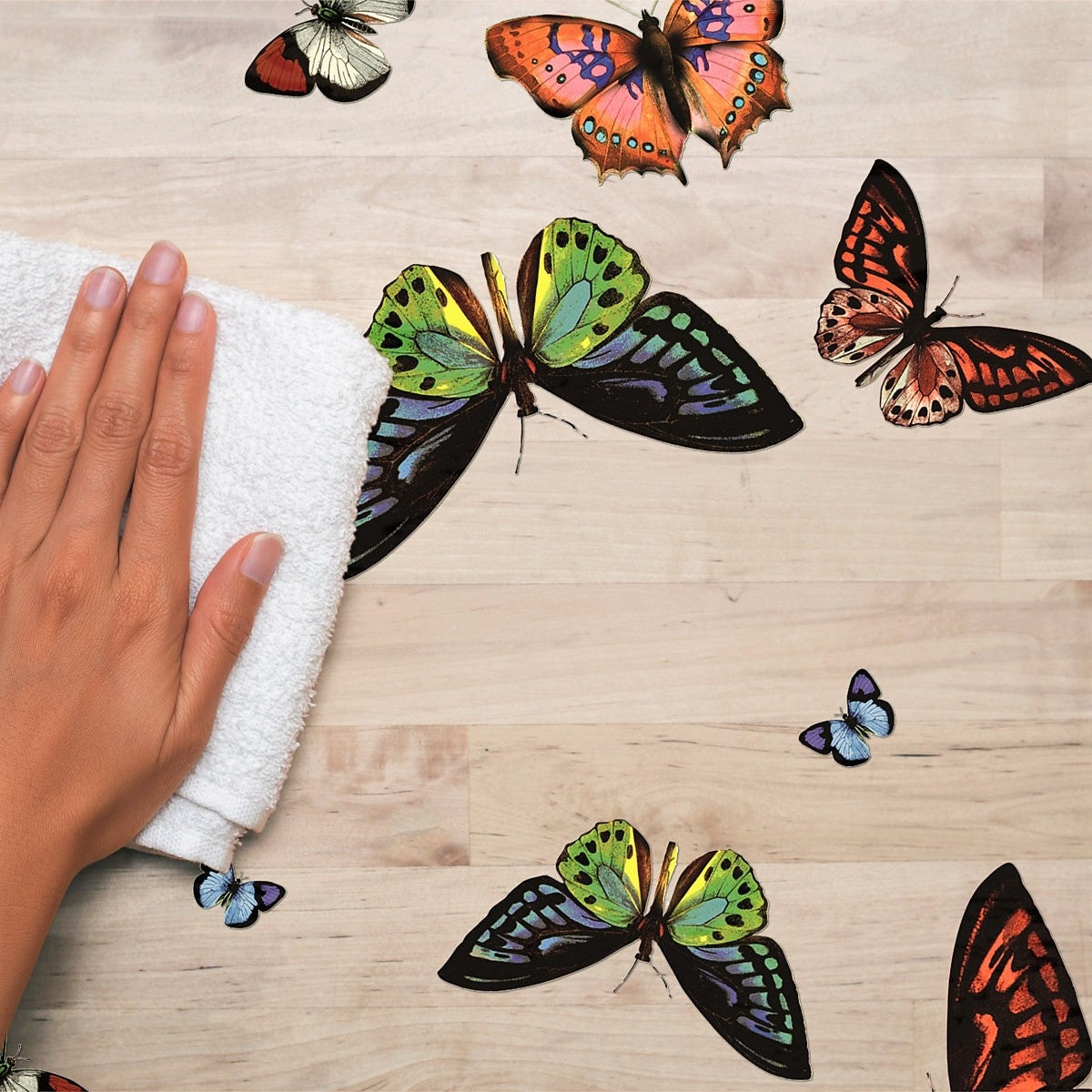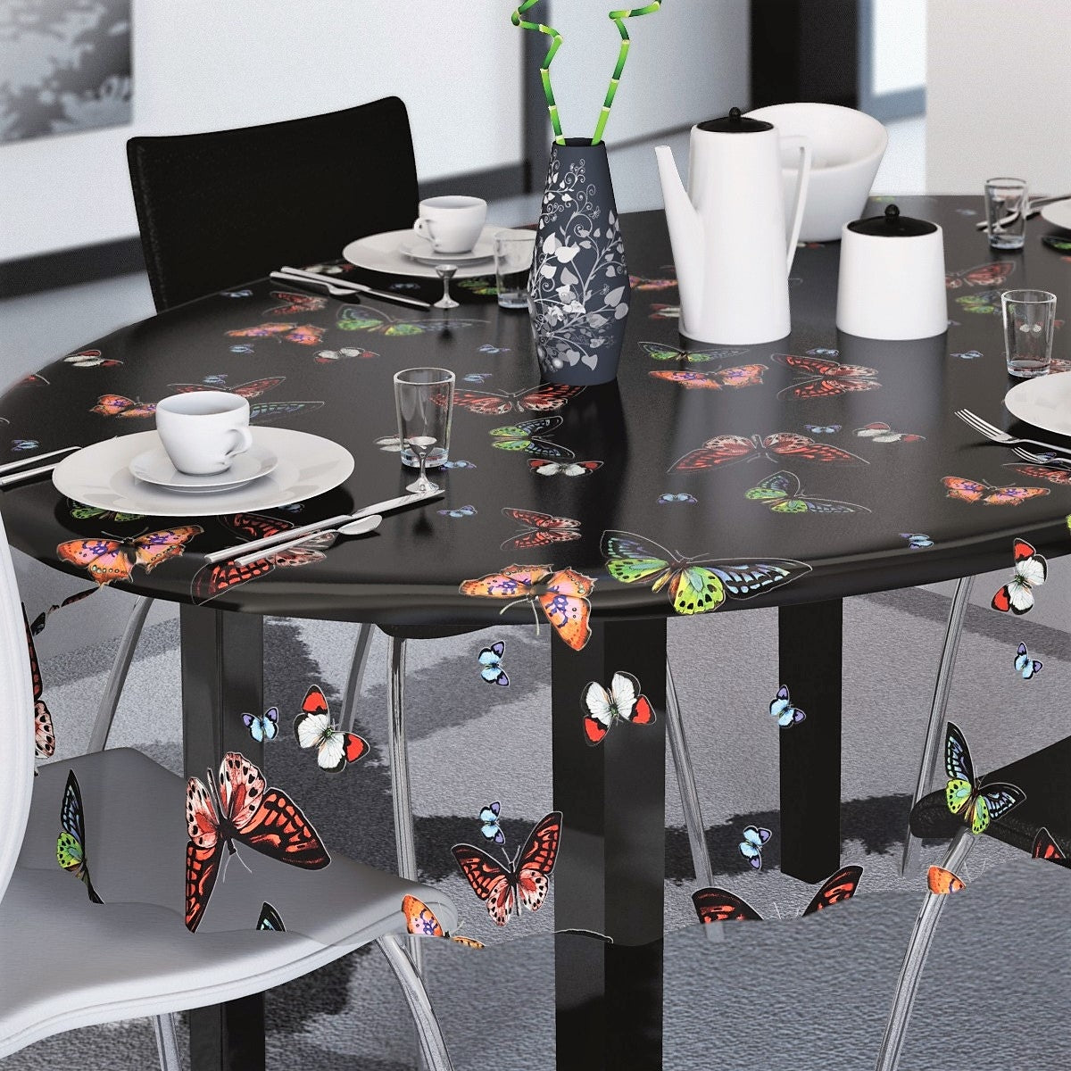 Lilith, gjennomsiktig voksduk, klar plastduk med fargerike sommerfugler