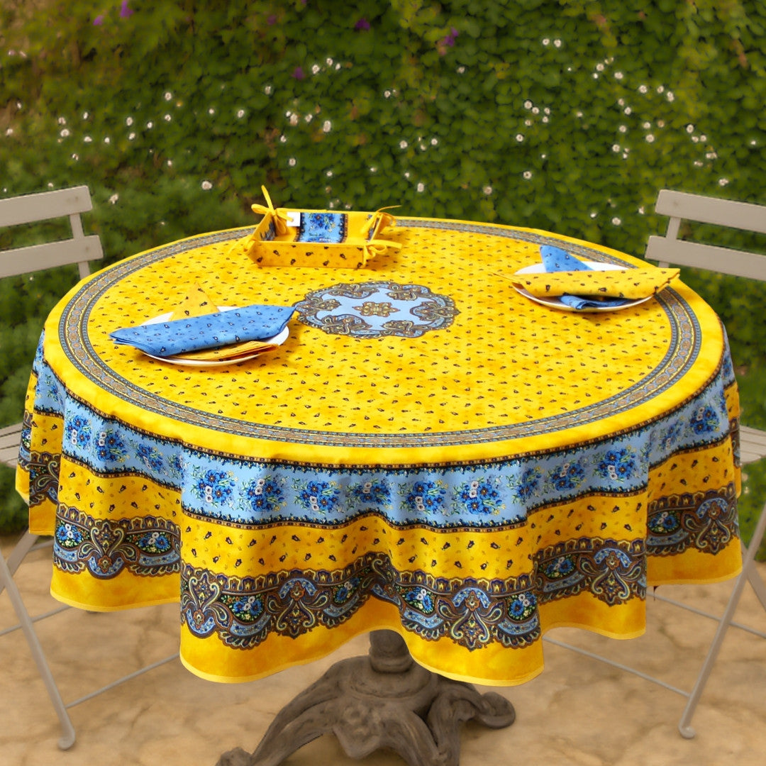 Marat d’Avignon Tradition Gul – Rund akrylbelagt provenceduk Ø 180 cm