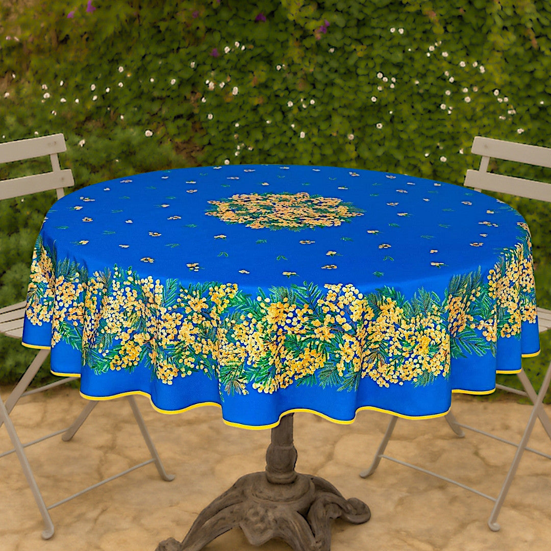 Mimosa Blå – Rund akrylbelagt provenceduk Ø 180 cm