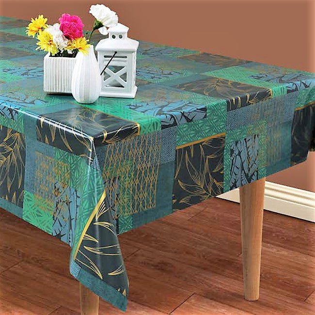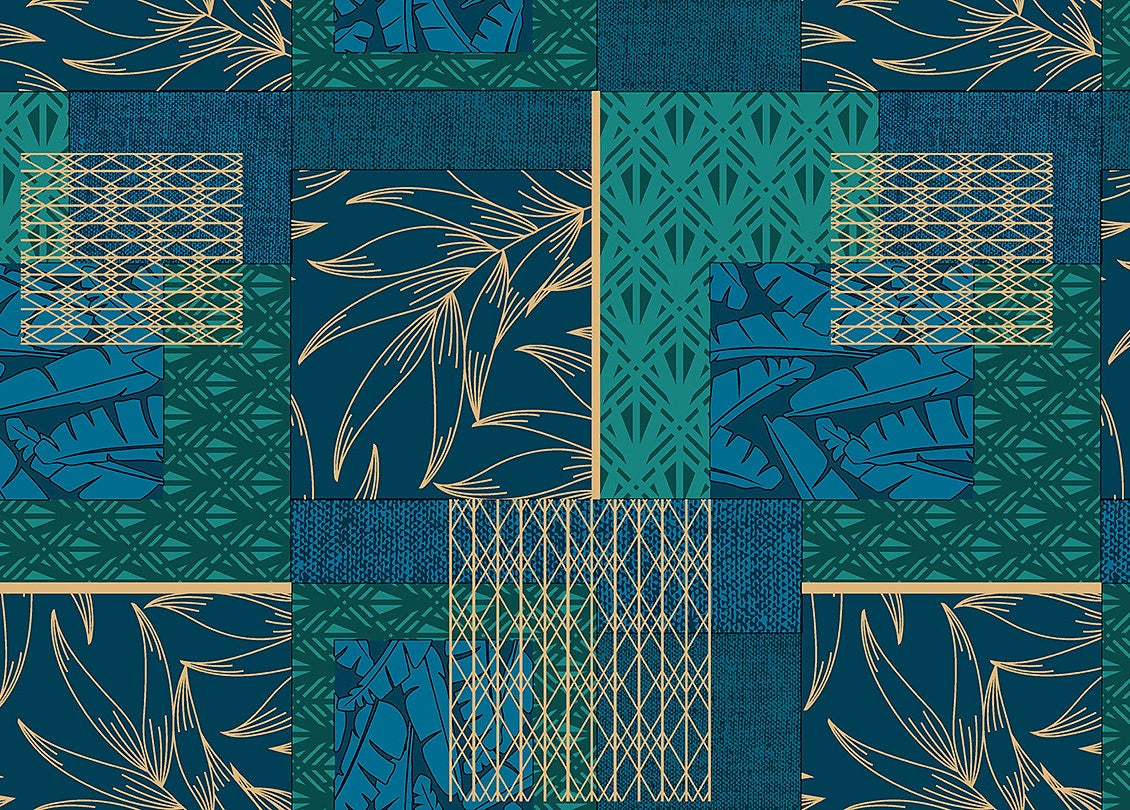 Mønstermiks – voksduk i blågrønne nyanser med innslag av gull