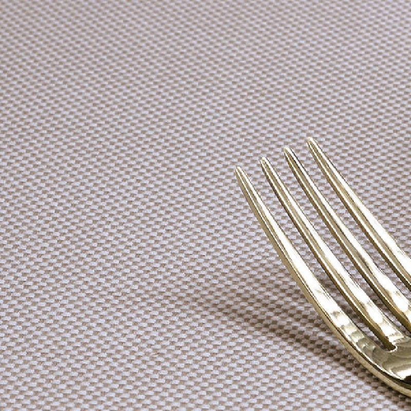 - Strykes på lav varme (maks. 110 °C) – med mindre duken har sklisikker bakside, som ikke må strykes
