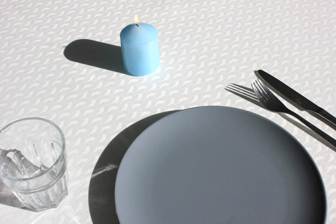 Munch White - Elegant hvit akrylduk med jacquardvevd mønster, 160 cm bred. er i restordre og sendes så snart varen er på lager igjen.