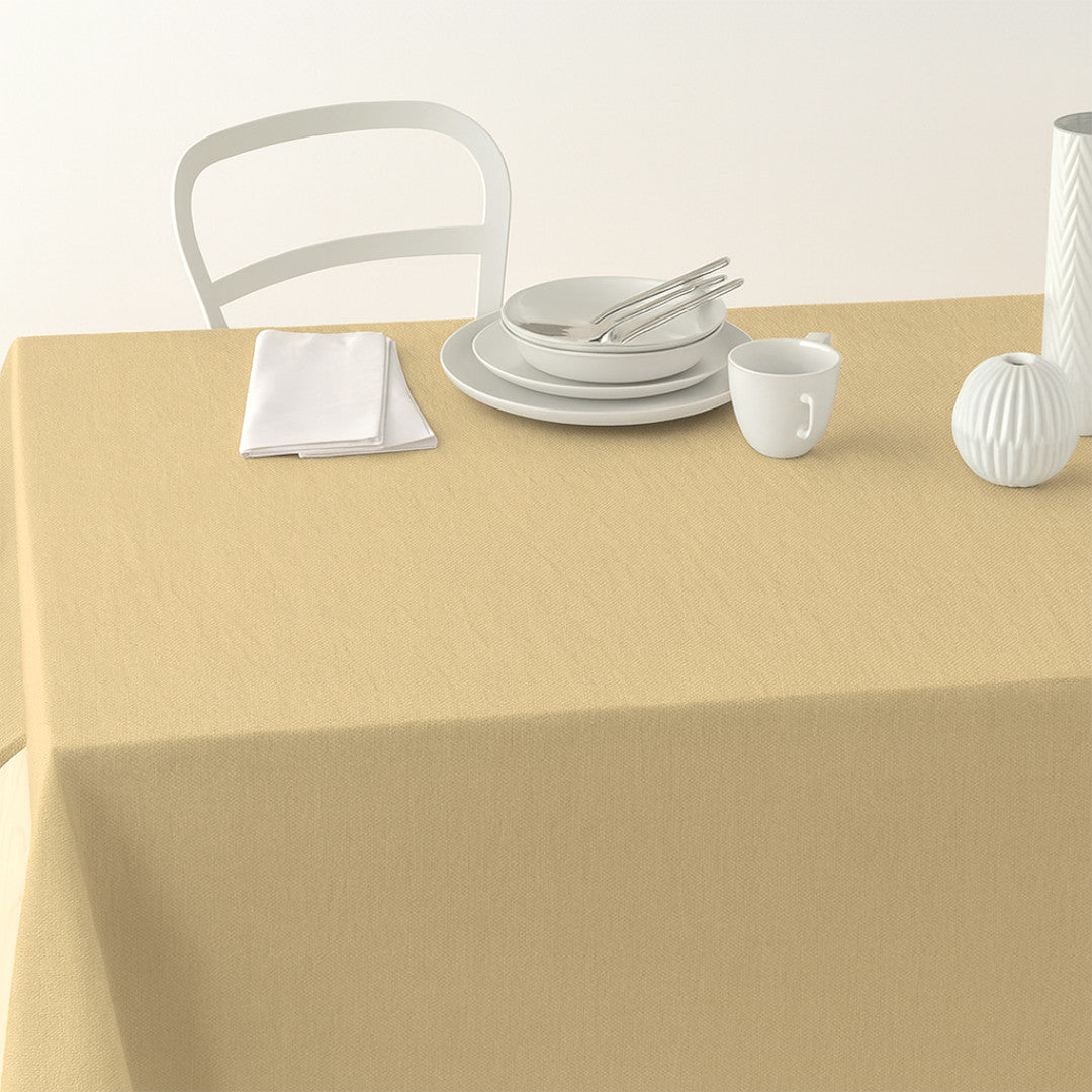 Dean Støvet Okker er en ensfarget akrylduk i en gyllen, dempet tone – perfekt for deg som ønsker et rolig, naturlig uttrykk med varme undertoner. Den vevde bomullen med visuelt linpreg gir en vakker, levende overflate, og akrylbelegget gjør duken både slitesterk og enkel å tørke av.