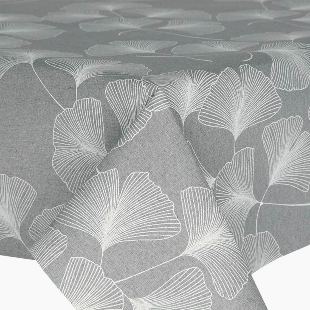 Ginko Grå er en akrylduk med et enkelt bladmønster i hvitt, som står i vakker kontrast til den grå bunn. De grafisk tegnede ginkobladene gir duken et rent og moderne uttrykk, inspirert av naturens former og enkle linjer.