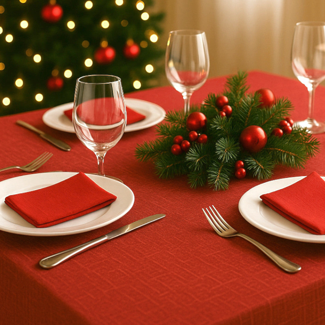 Nordfavn Elegant Christmas Red – når duken skal være både vakker, praktisk og full av stemning.