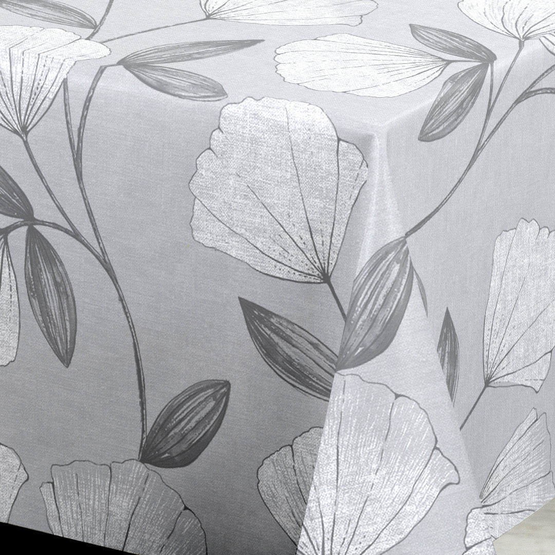 Nordfavn Shell Grå Sølv – Voksduk med elegant bladmotiv