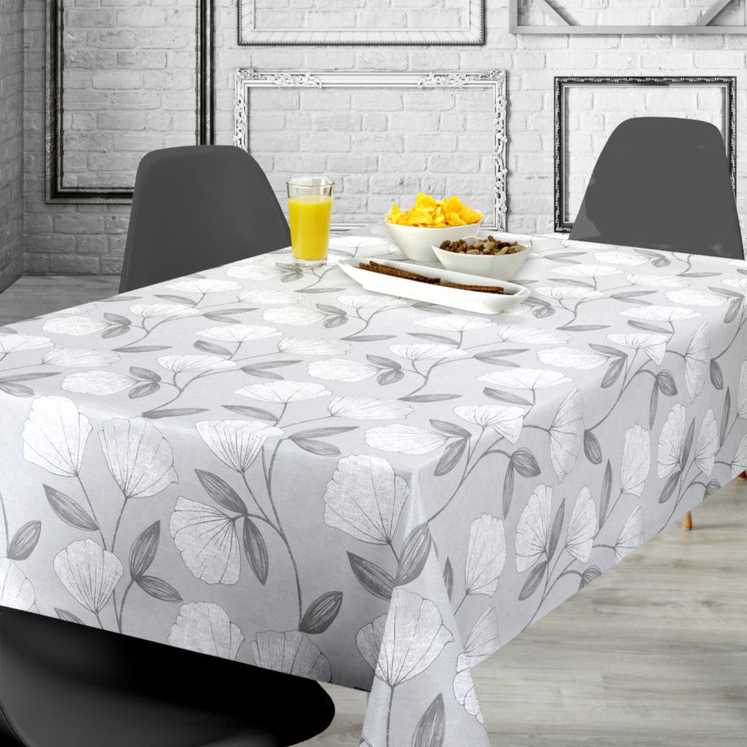 Nordfavn Shell Grå er en stilren voksduk med et lett og elegant blomstermønster i myke gråtoner på en lys bunn. De fine blomstene og organiske grenene skaper et rolig og harmonisk uttrykk som gir borddekkingen et lett og sofistikert preg.