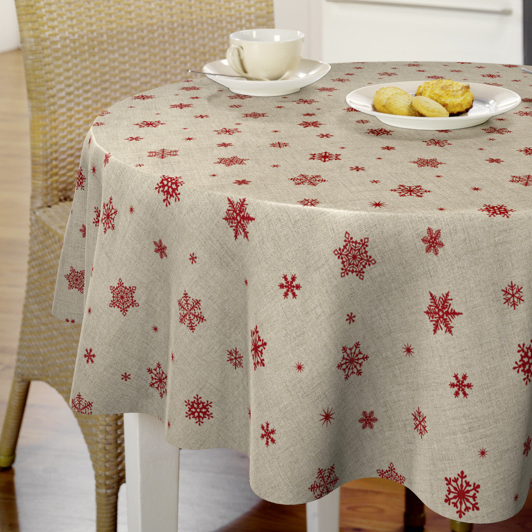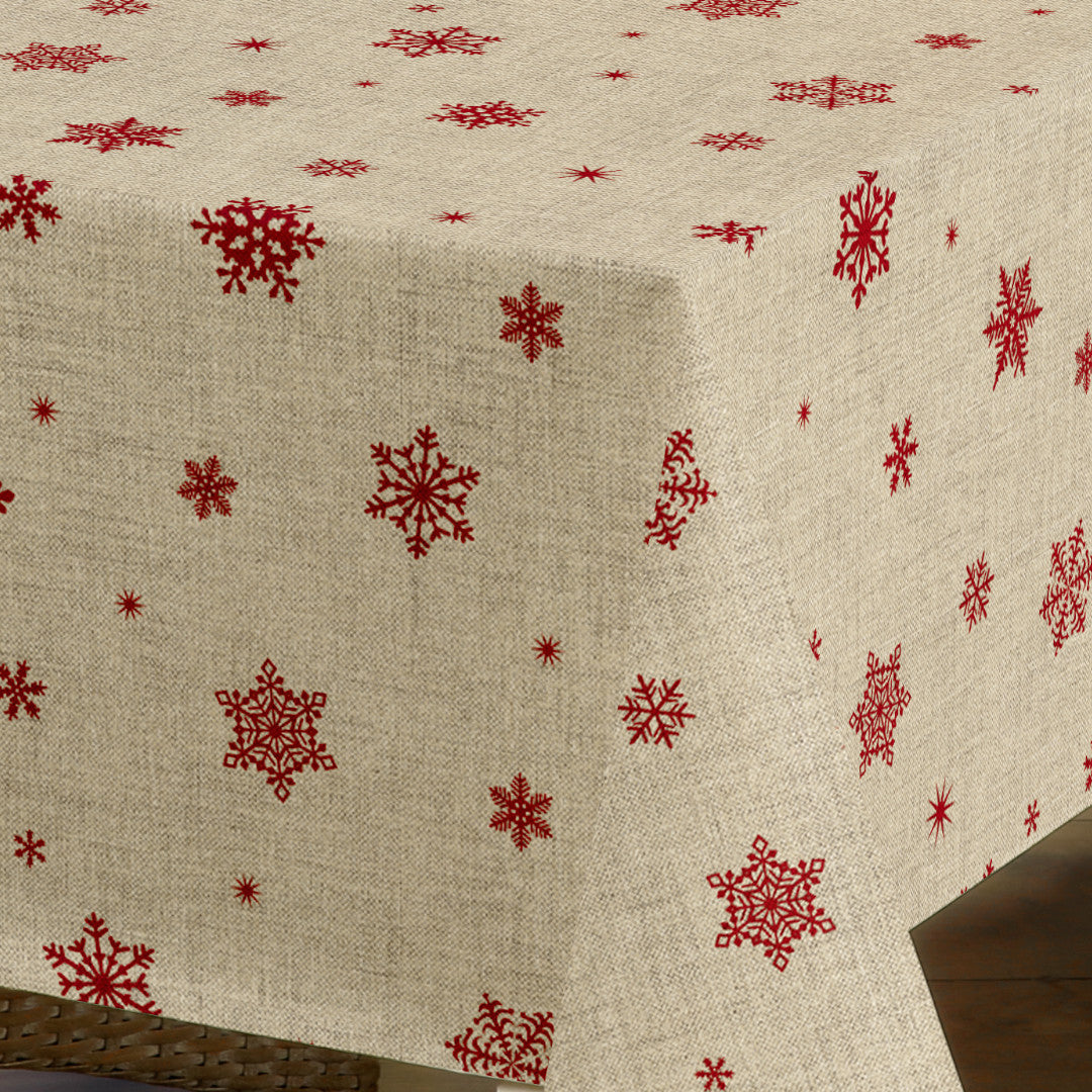 Nordfavn Snowflakes er en julevoksduk som kombinerer enkelhet og julestemning på en rolig, nordisk måte. Den lyse, linfargede bunnen gir et varmt uttrykk, mens røde snøfnugg og iskrystaller skaper en fin kontrast og et klassisk vintermotiv. Mønsteret er detaljert, men dempet – slik at bordet får en julelig stemning uten å stjele all oppmerksomheten.