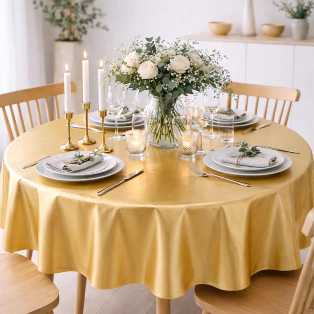 Nordfavn Uni Gull er en ensfarget voksduk i en lys og elegant gullfarge som tilfører borddekkingen varme og et eksklusivt, festpreget uttrykk. Den glatte overflaten gir et jevnt og stilrent utseende som passer vakkert sammen med både klassisk servise og pynt.