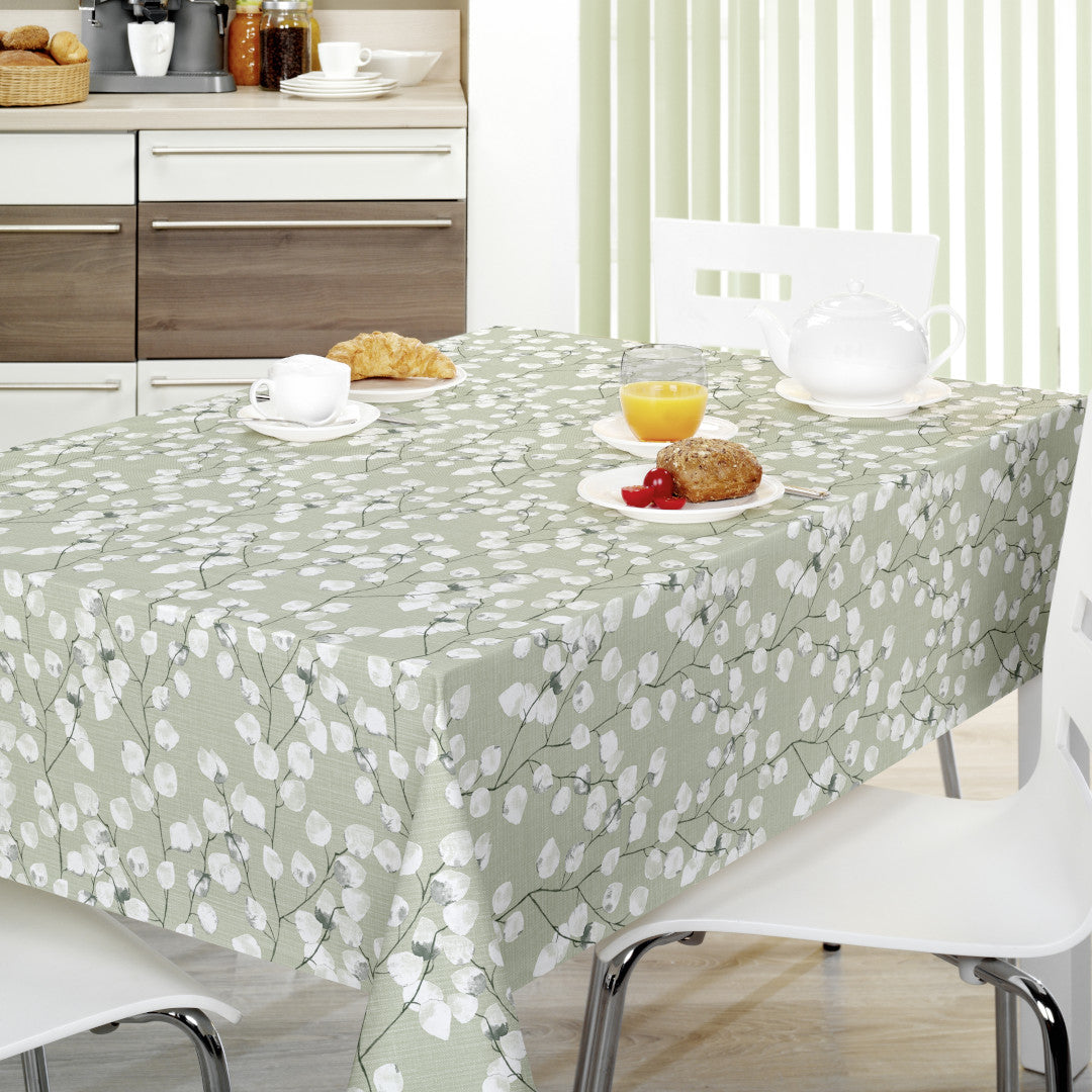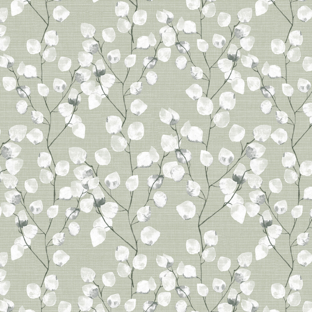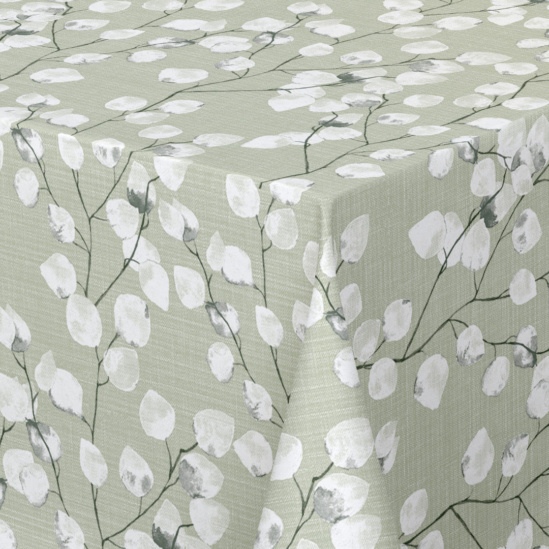 Nova Green – Støvet lysegrønn voksduk med hvite blader