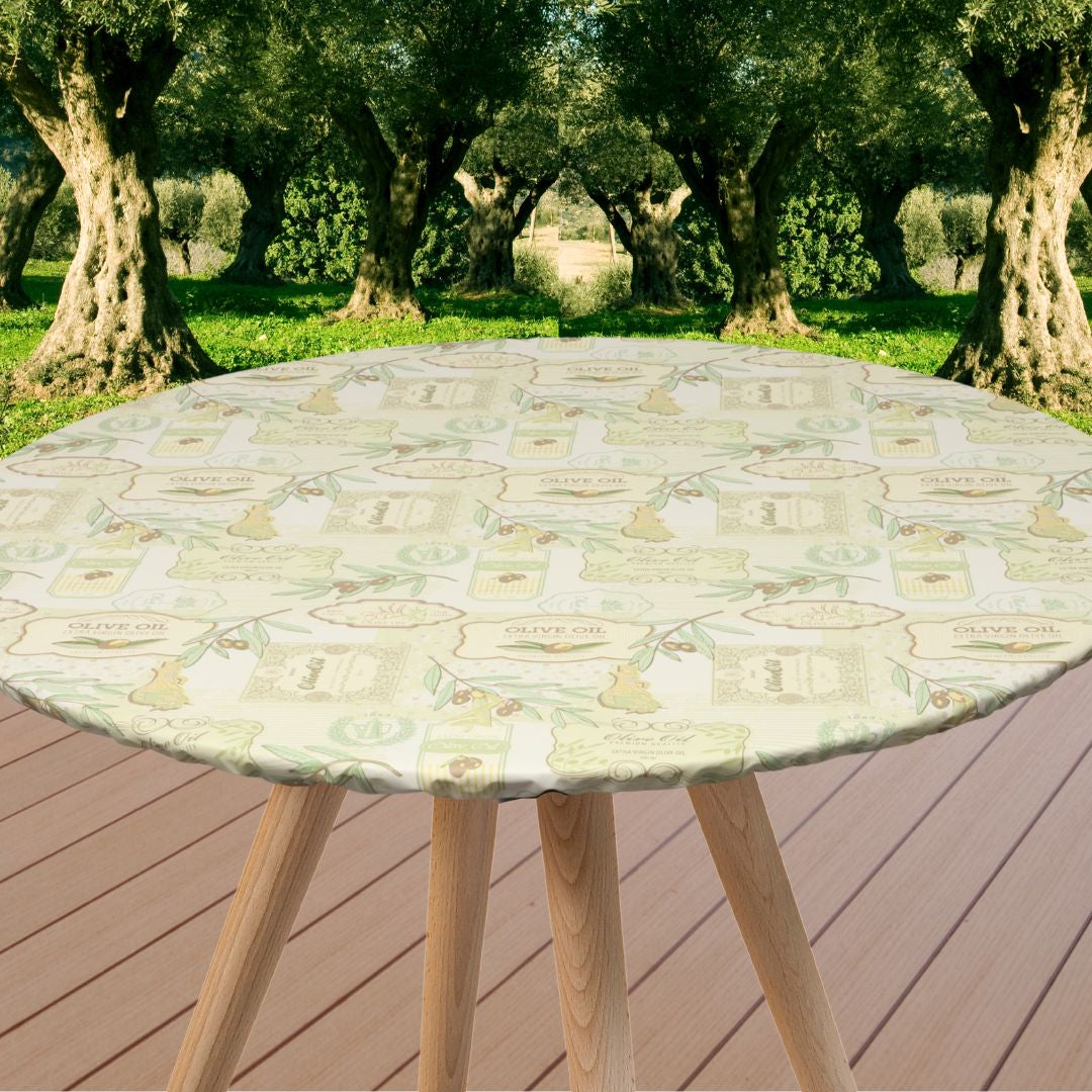 Oliven i Pastell - Rund voksduk med strikk er i restordre og sendes så snart varen er på lager igjen.