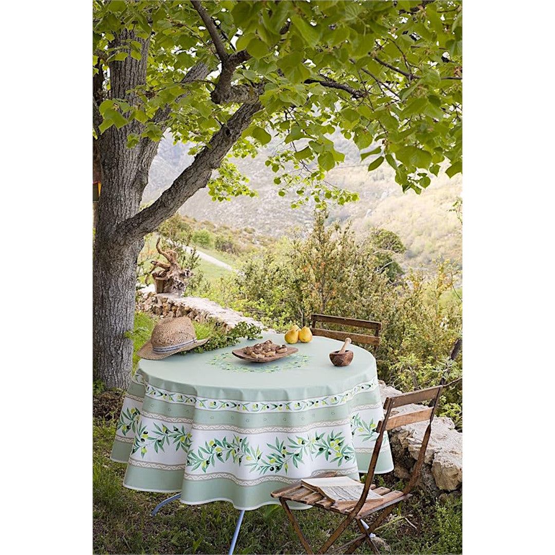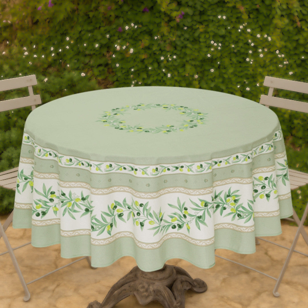 Ramatuelle Grønn – Rund akrylbelagt provenceduk Ø 180