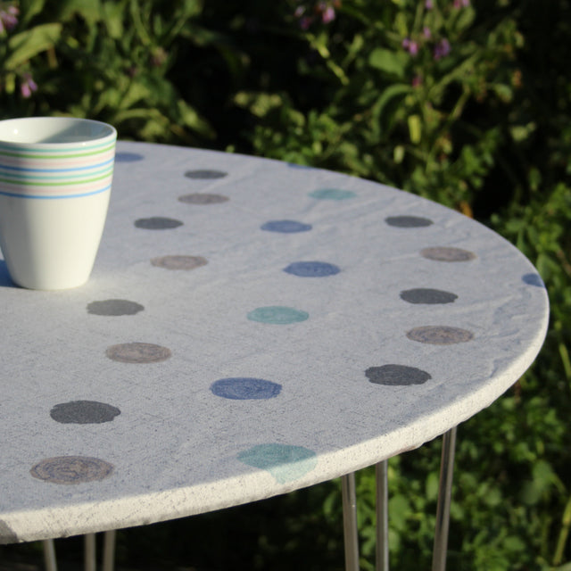 Redon med prikker - rund akrylduk med strikket kant er i restordre og sendes så snart varen er på lager igjen.