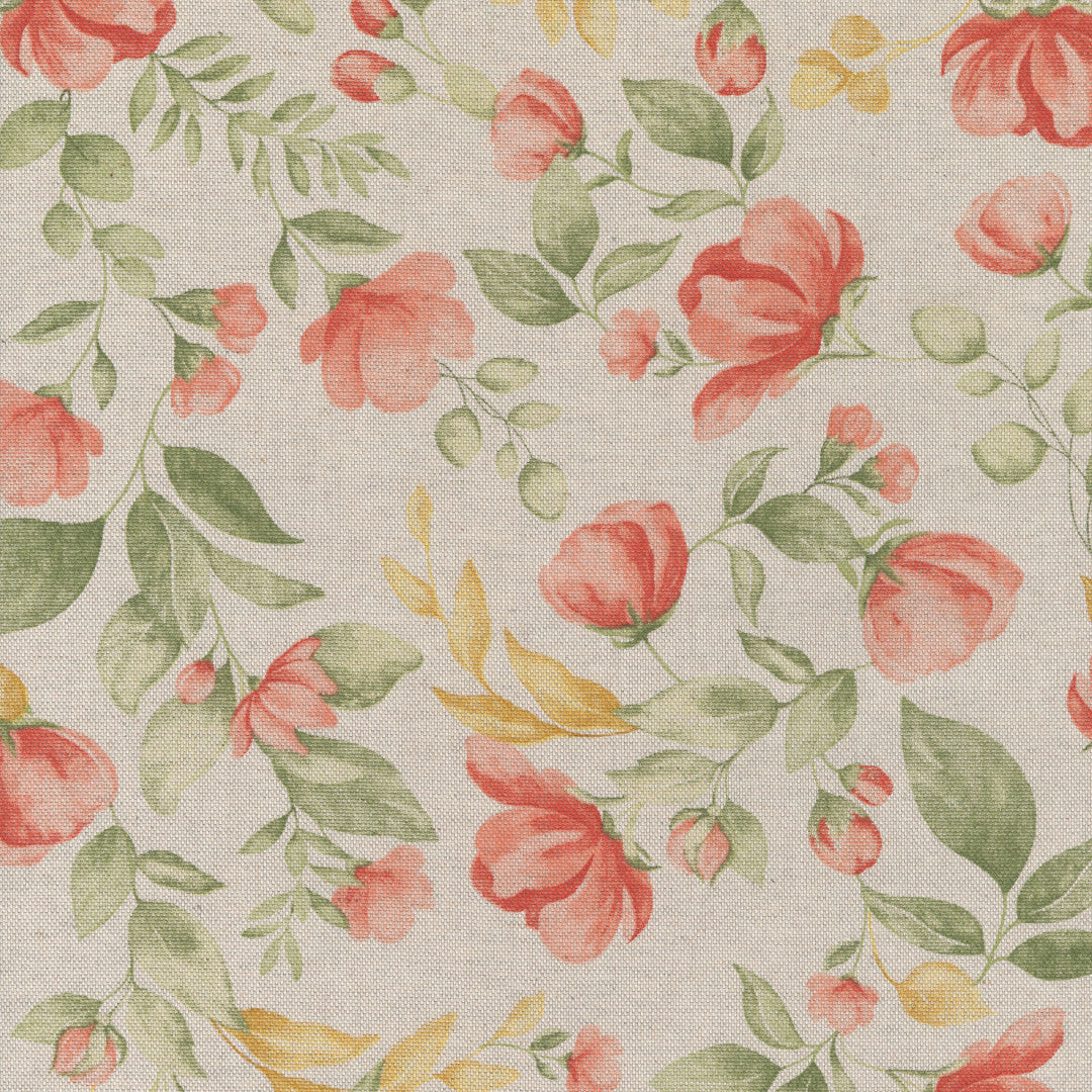 Roselia – Akrylduk i hørlook med romantiske blomster er i restordre og sendes så snart varen er på lager igjen.