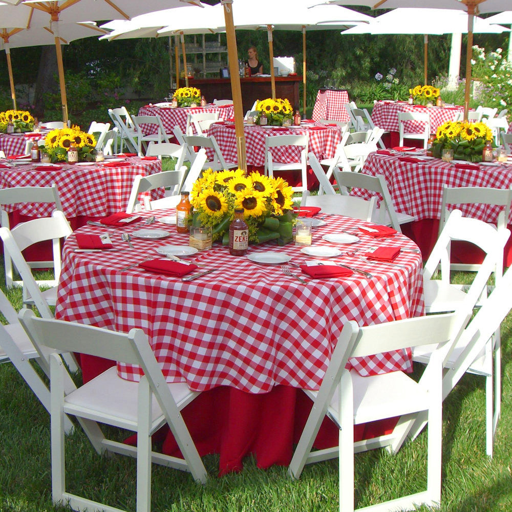 Rund rød og hvit rutet akrylduk - Ø 160 cm er i restordre og sendes så snart varen er på lager igjen.