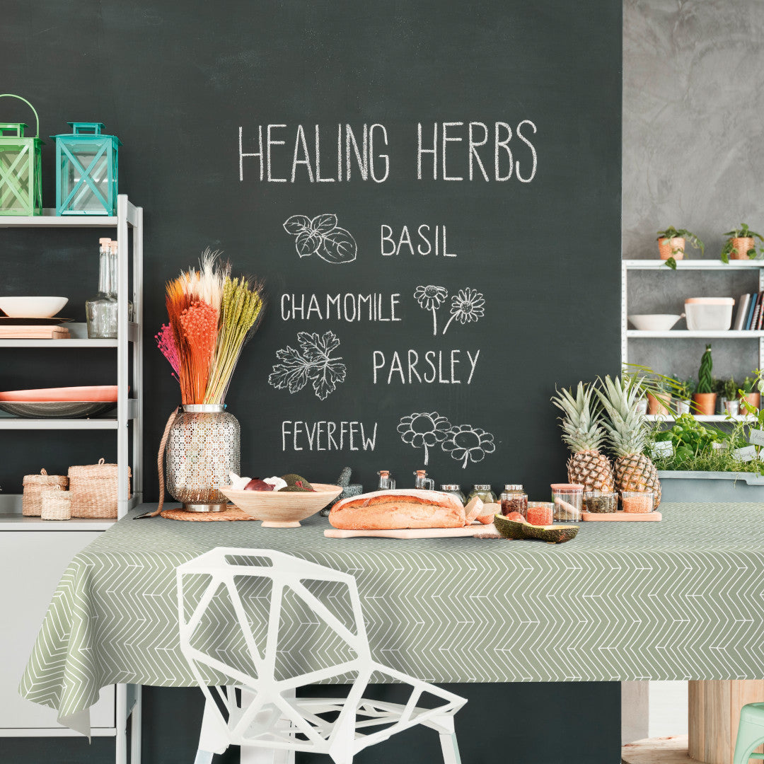 Med Sabila Sage får du en vakker og praktisk voksduk som gir hjemmet ditt et moderne og rolig uttrykk.