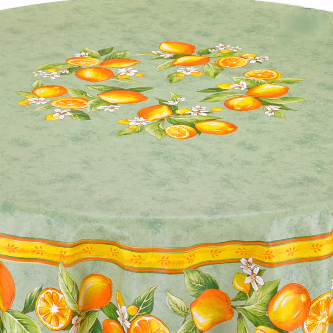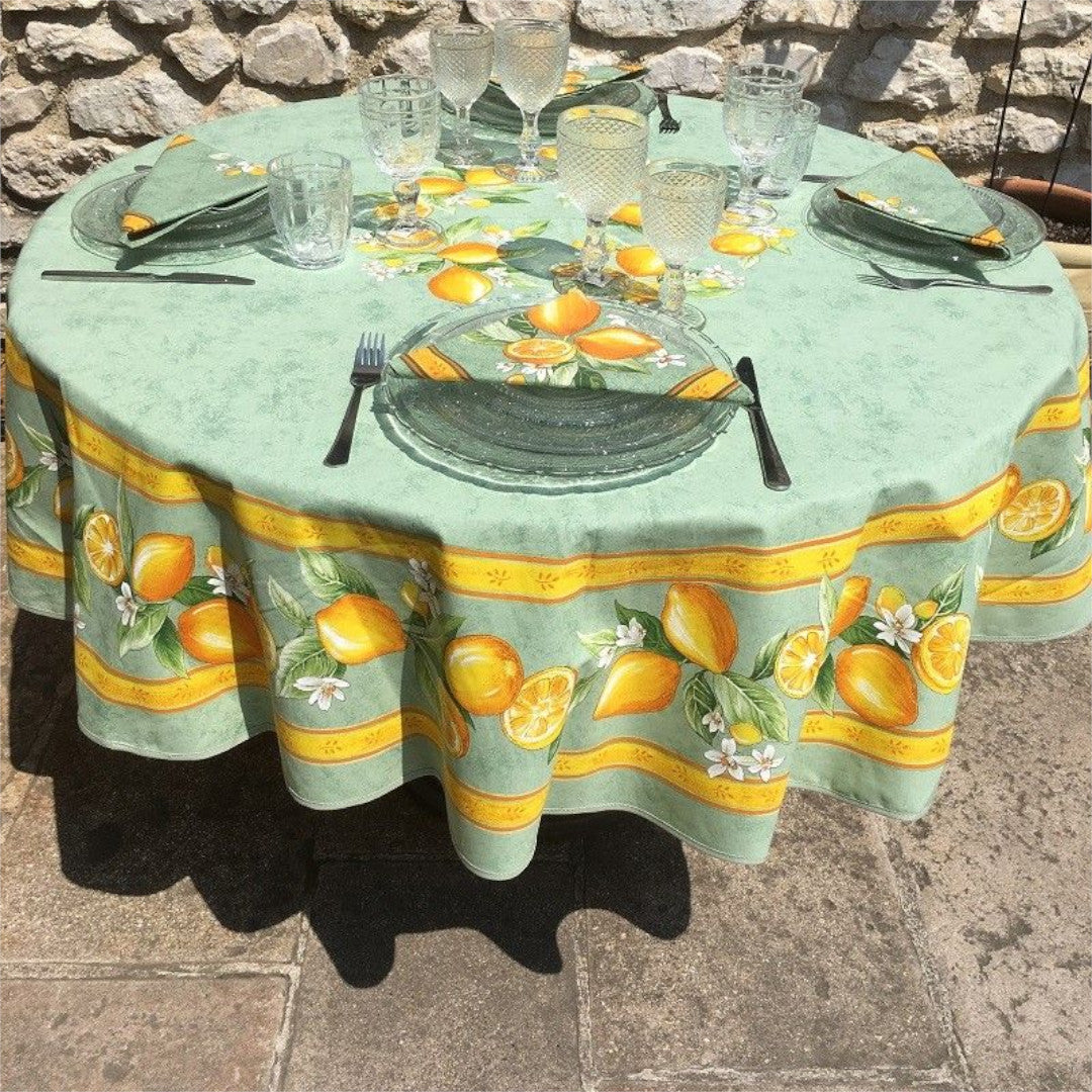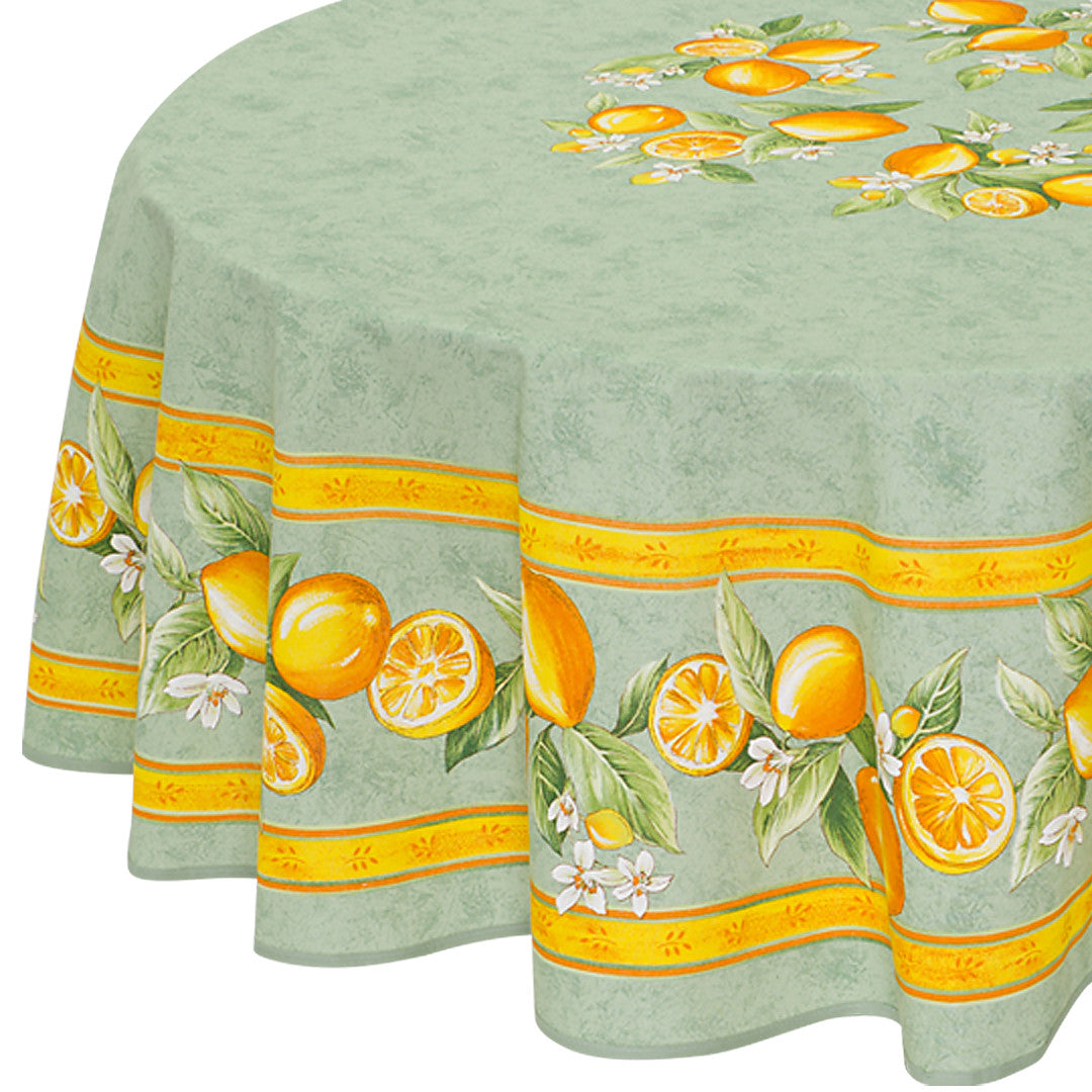 Sitron Grønn – Stor rund akrylbelagt provenceduk Ø 230