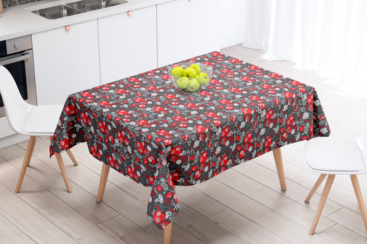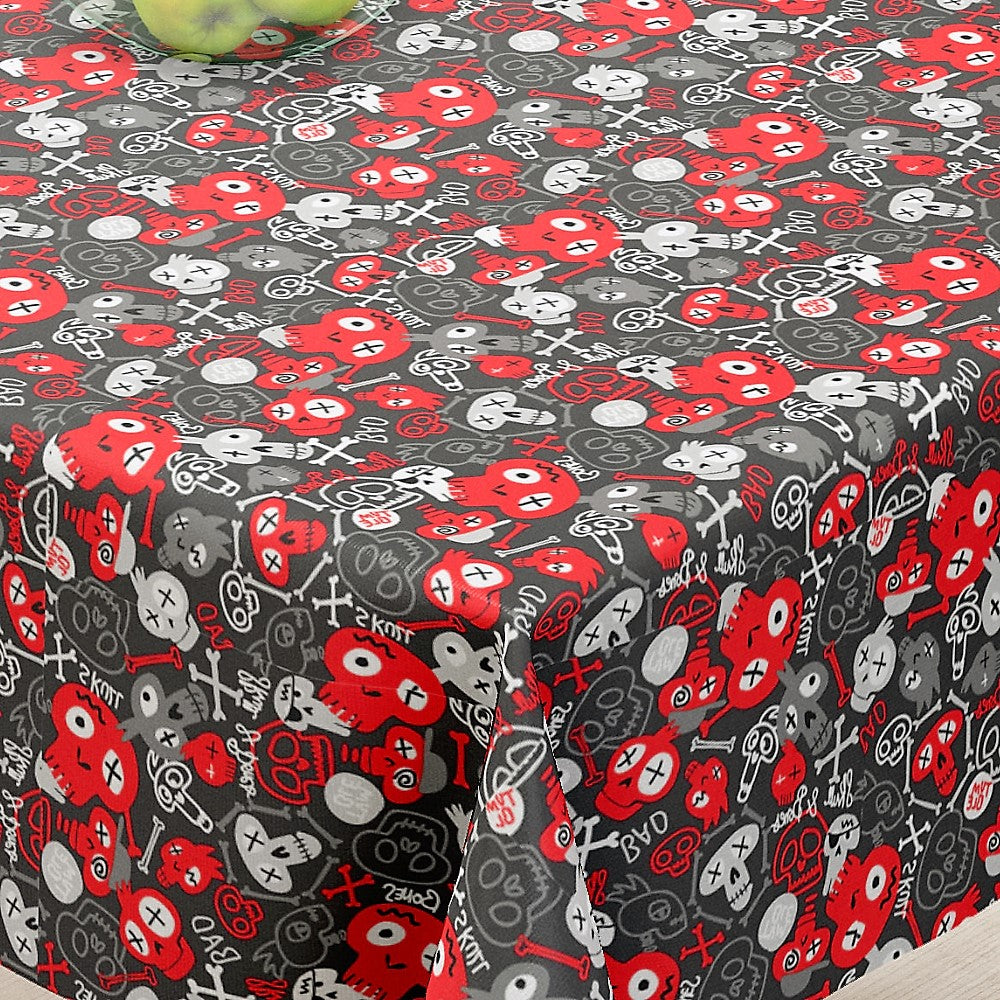 Skull Rød - Akrylduk med små hodeskaller - 155 cm bred