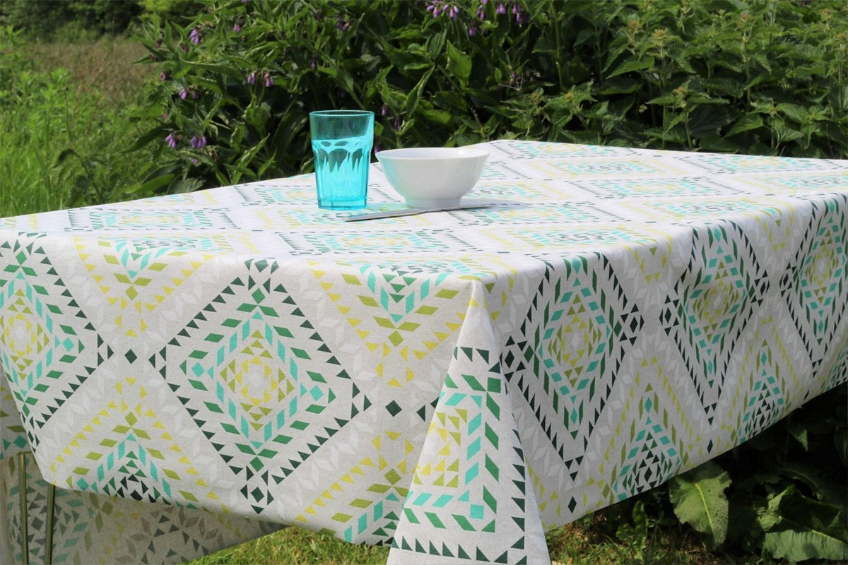Smalts Grafiske Stjerner – grønn, Laura Lancelle akrylduk – 150 cm bred