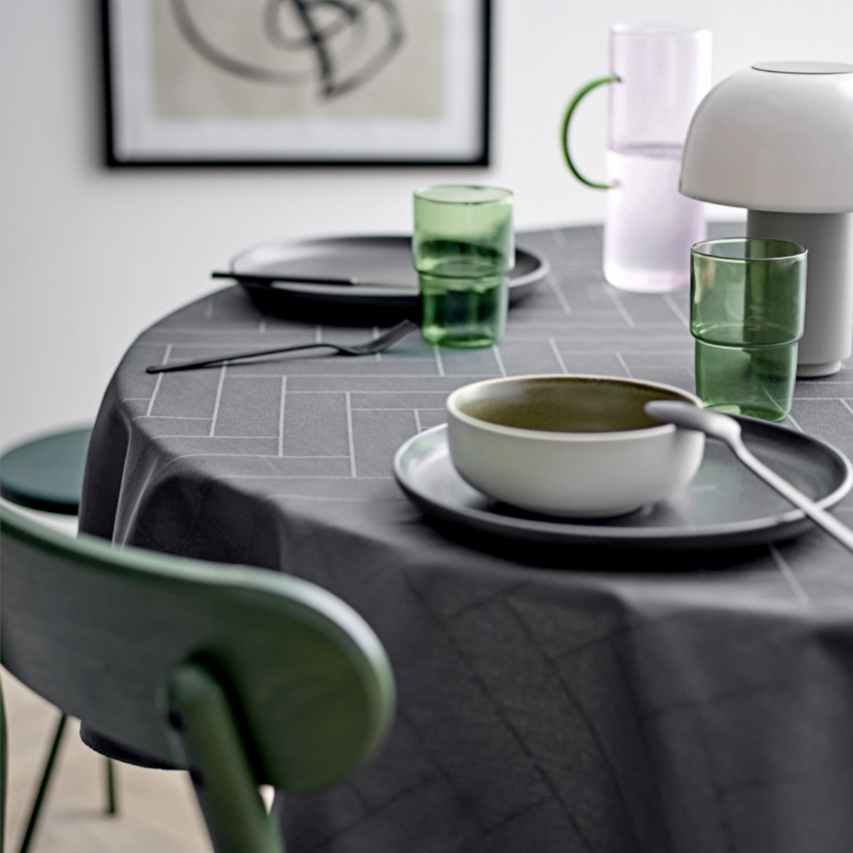 Södahl Tiles Ash Mørk Grå, klassisk damaskvevd akrylduk med antiskli