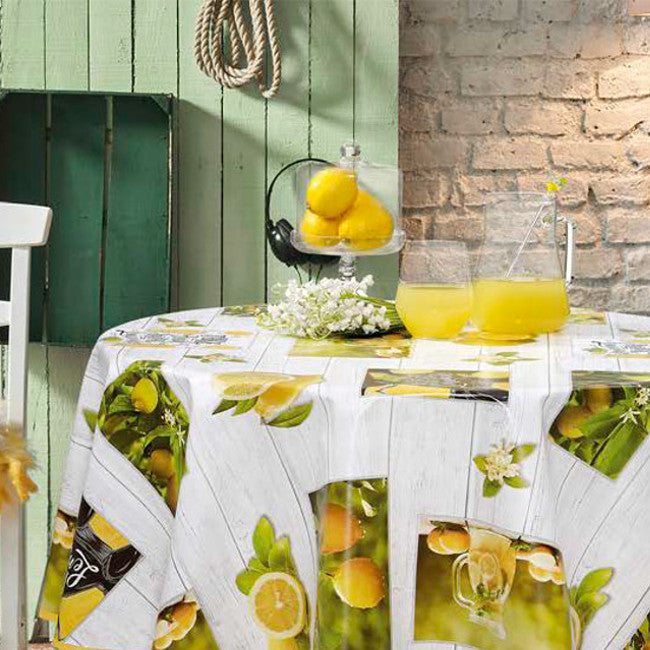 Sommer og Sitroner – Voksduk med sitroner på grå plankebunn