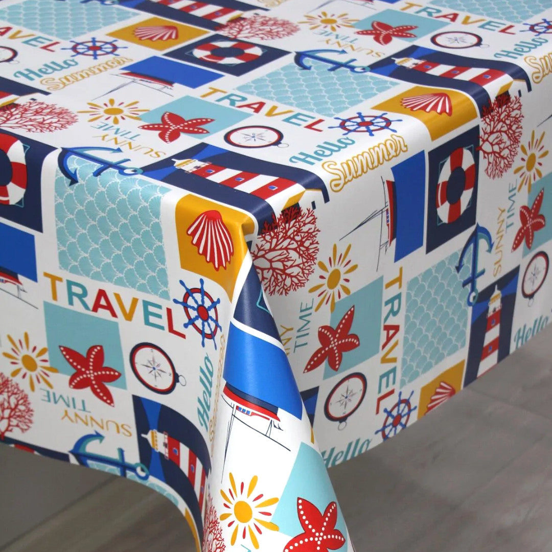 Sommer ved Havet – hvit voksduk med maritime motiver