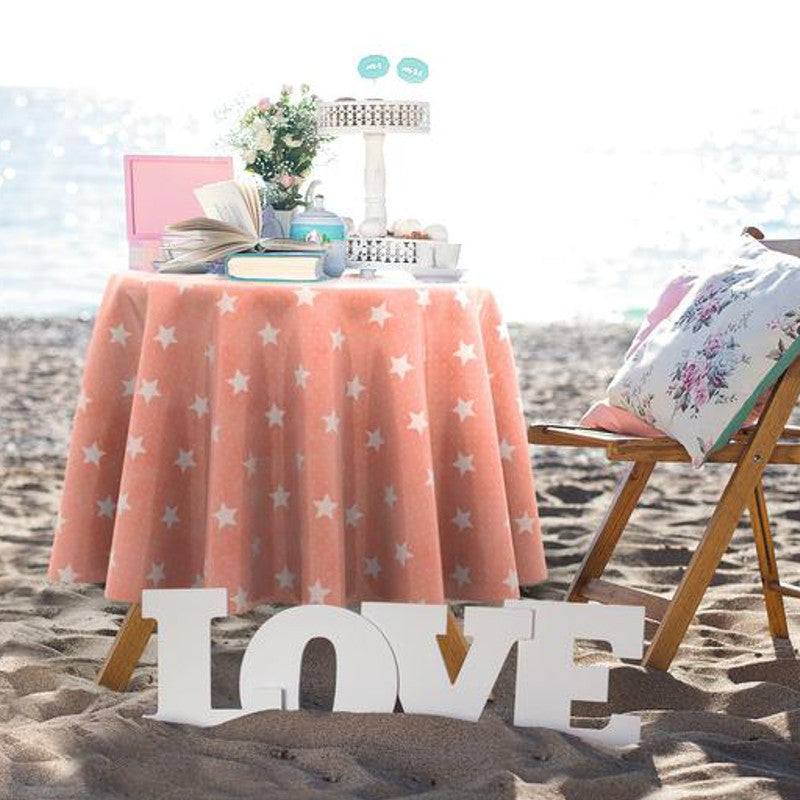 Starlet Apricot, aprikosfarget voksduk med hvite stjerner