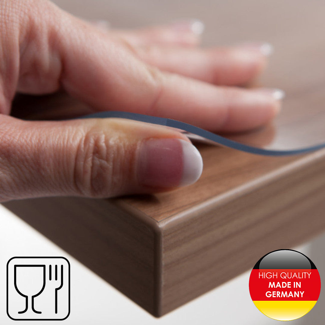 Tyk, gjennomsiktig voksduk, som beskytter bordet optimalt.