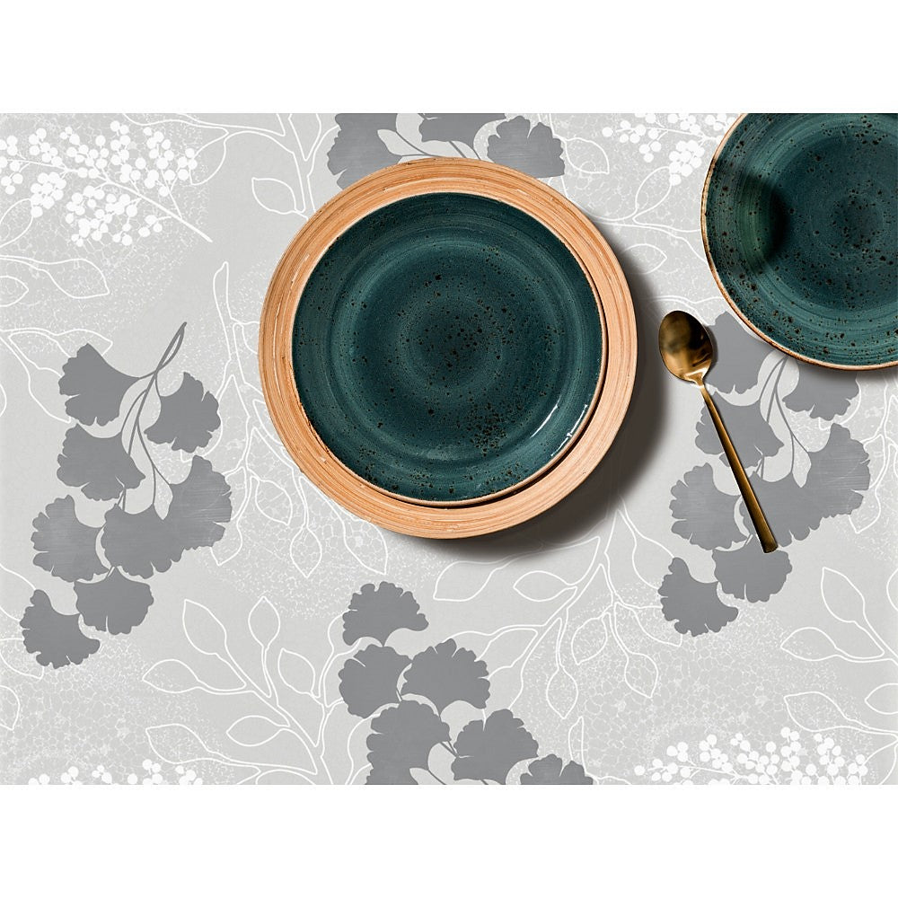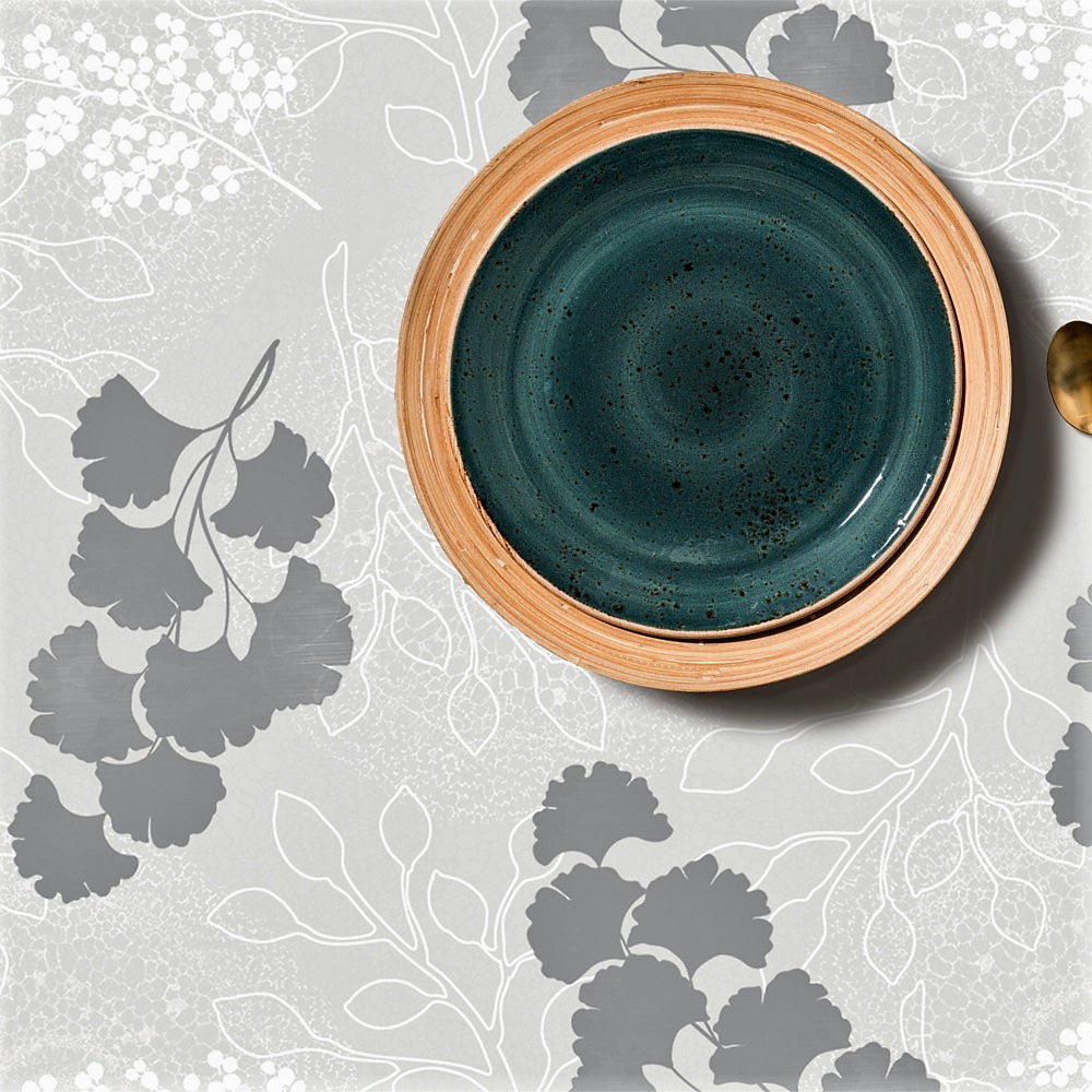 Stilfull Palmera - Voksduk med striper og blomster i gråtoner