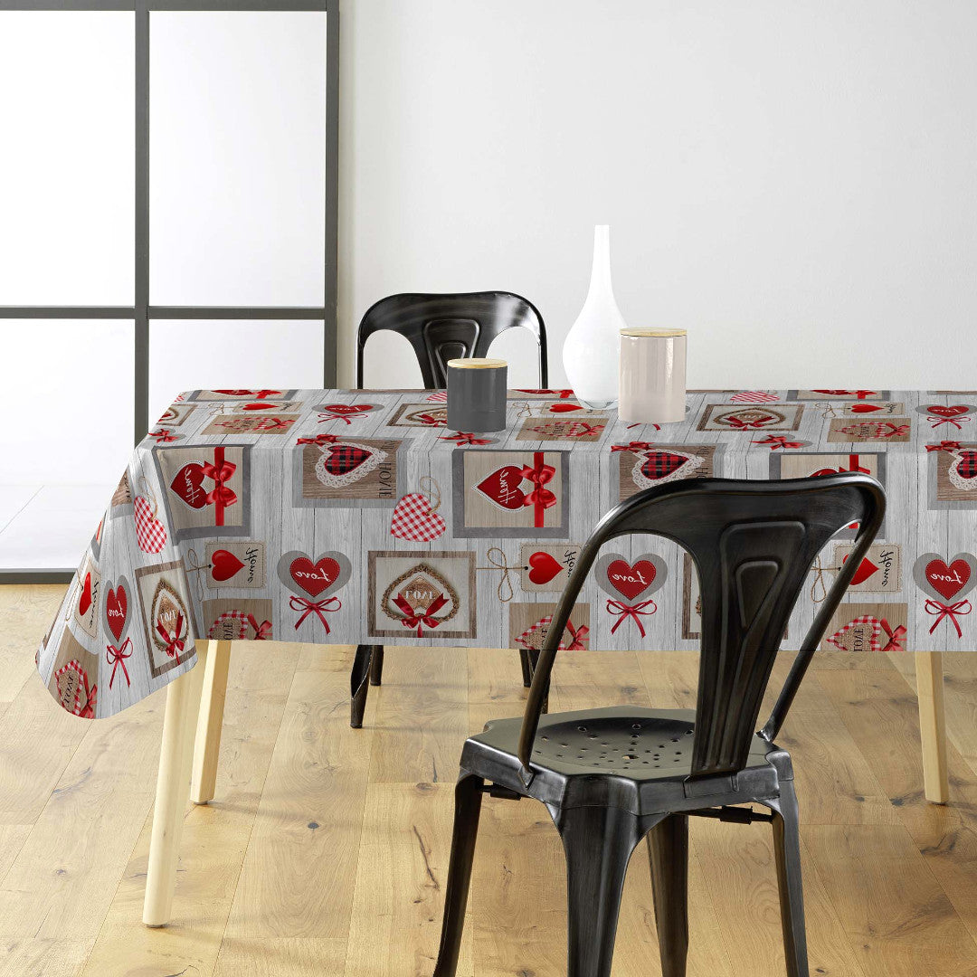 Vil du skape en varm og koselig stemning rundt bordet? Da er Sweet Love voksduken midt i blinken. Duken har et sjarmerende motiv med røde og rutete hjerter, sløyfer, tretreteksturer og små budskap som “Love”, “Home” og “Sweet Home” – alt presentert som små tavler og skiltelignende detaljer i patchwork-stil.