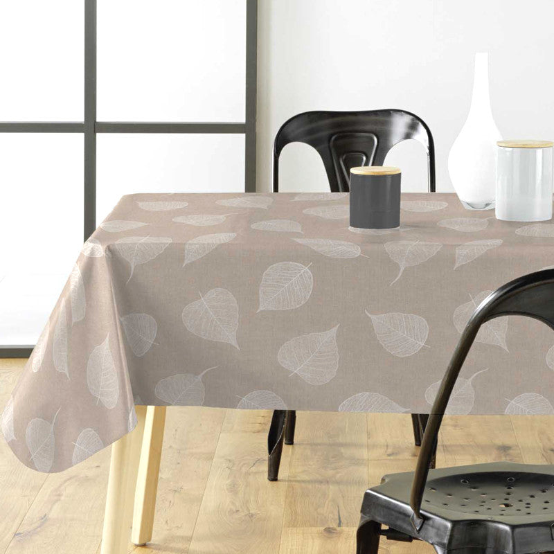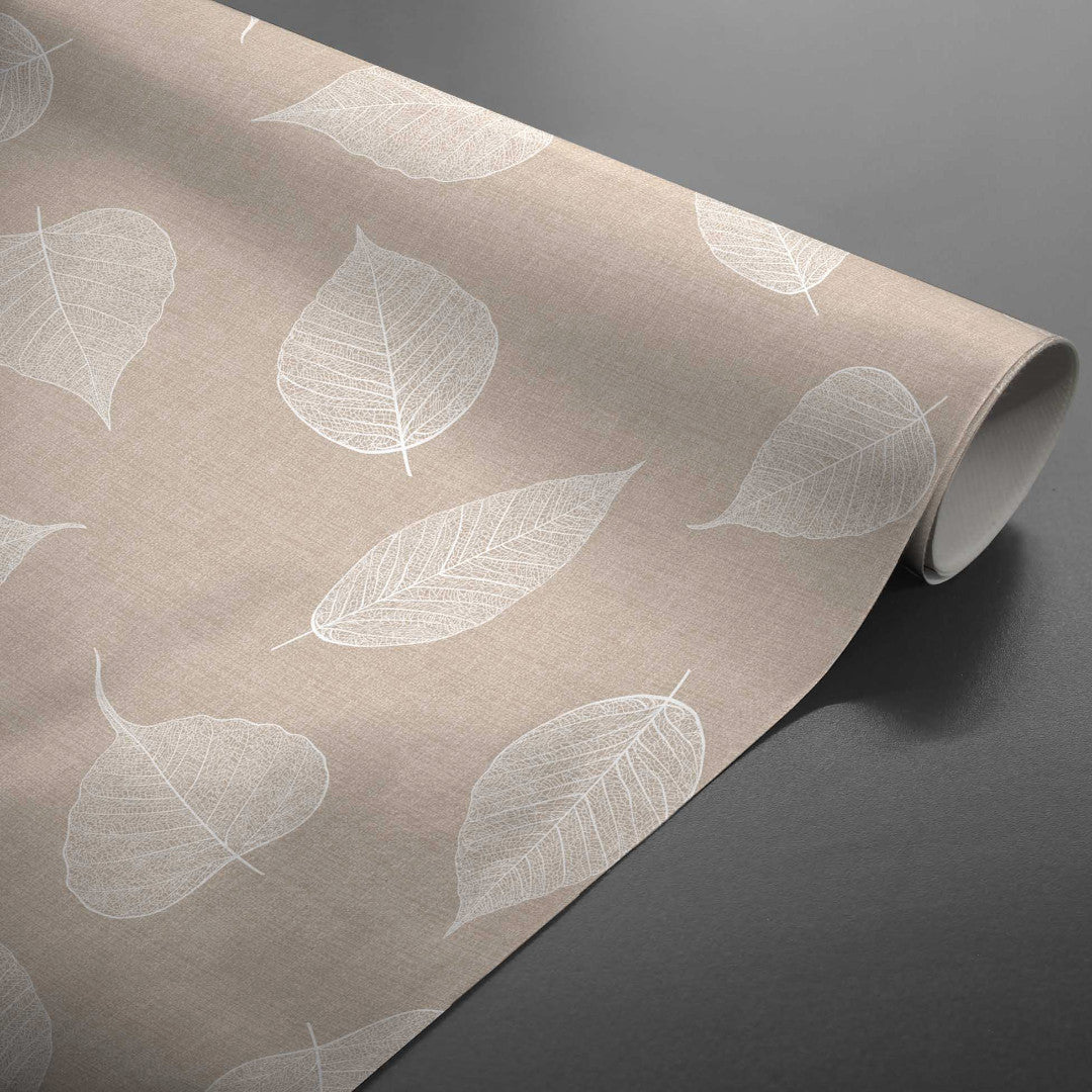Textilia Feuillys White – Voksduk i hørlook med hvite strekblader