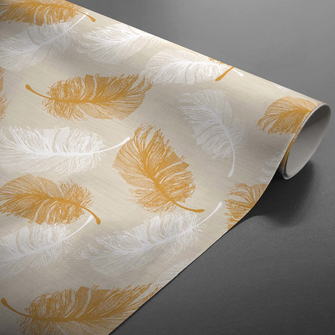Textilia Glitter Sarina – Voksduk med vakre fjær i sølv‑ og gulleffekt