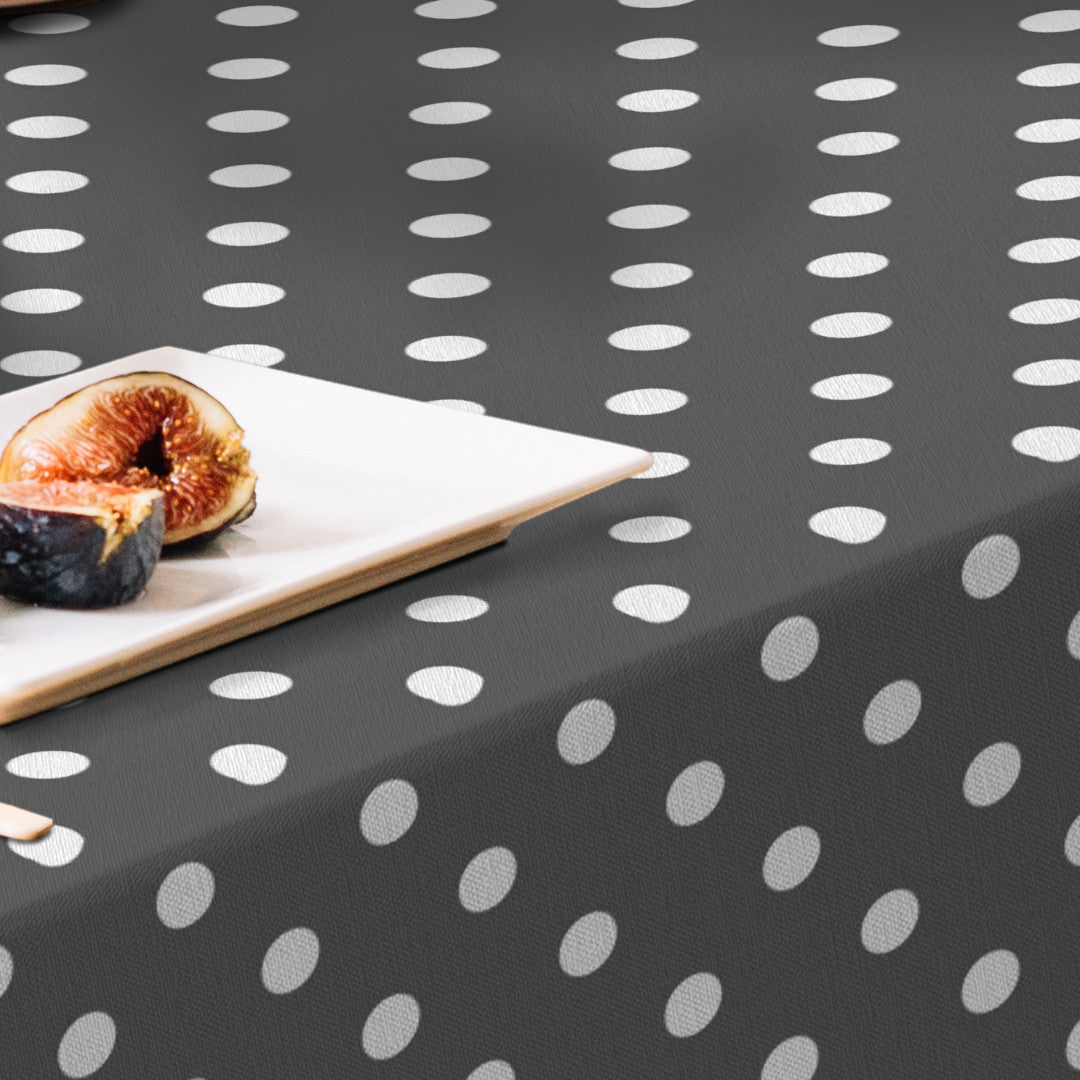 Top Dots Grey – Mørk grå voksduk med hvite prikker