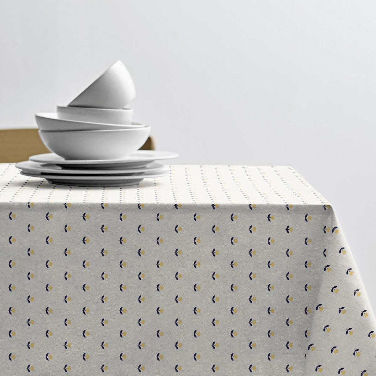 - Strykes på lav varme (maks. 110 °C) – med mindre duken har sklisikker bakside, som ikke må strykes