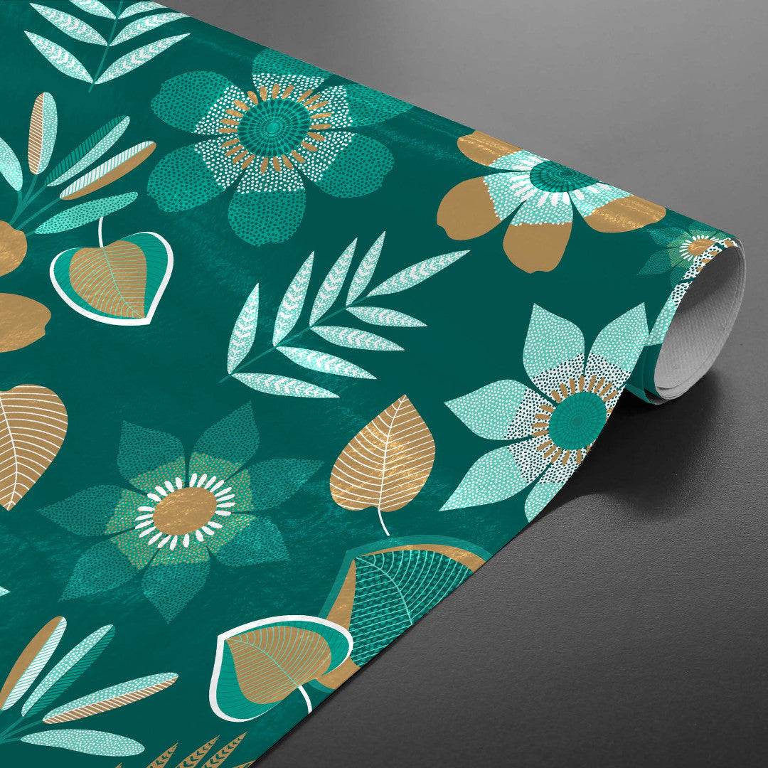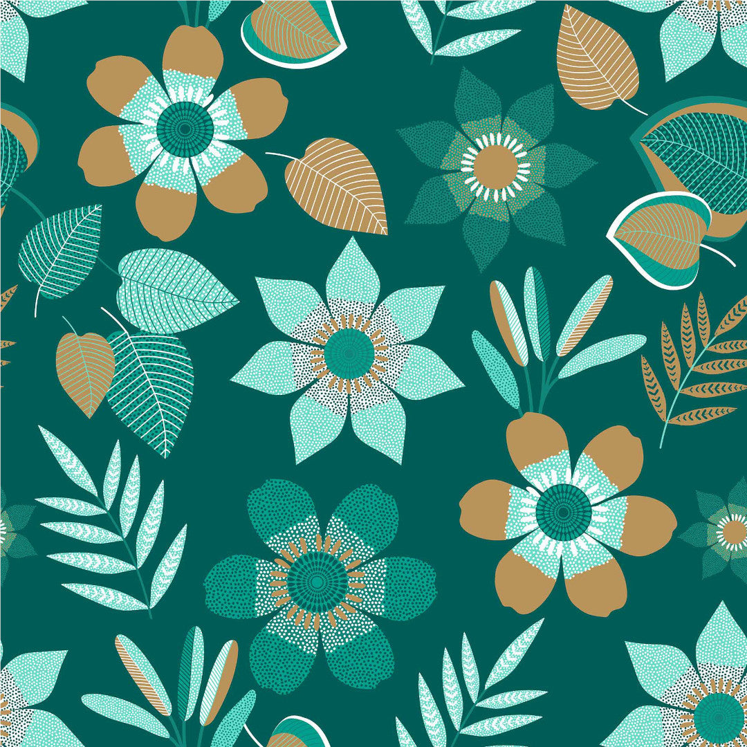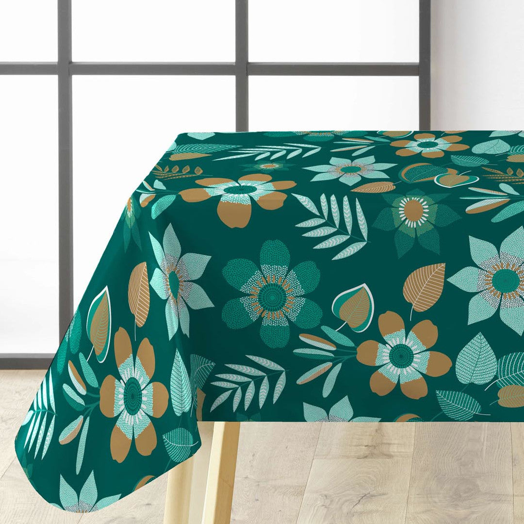 Vanda - Mørkegrønn voksduk med blomster og blader