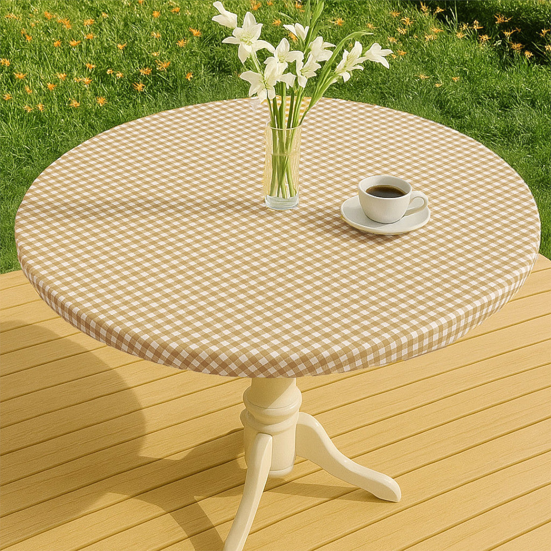Vichy Petite Sand - Runde voksduker med strikk - Til bord Ø 60 - Ø 130 cm