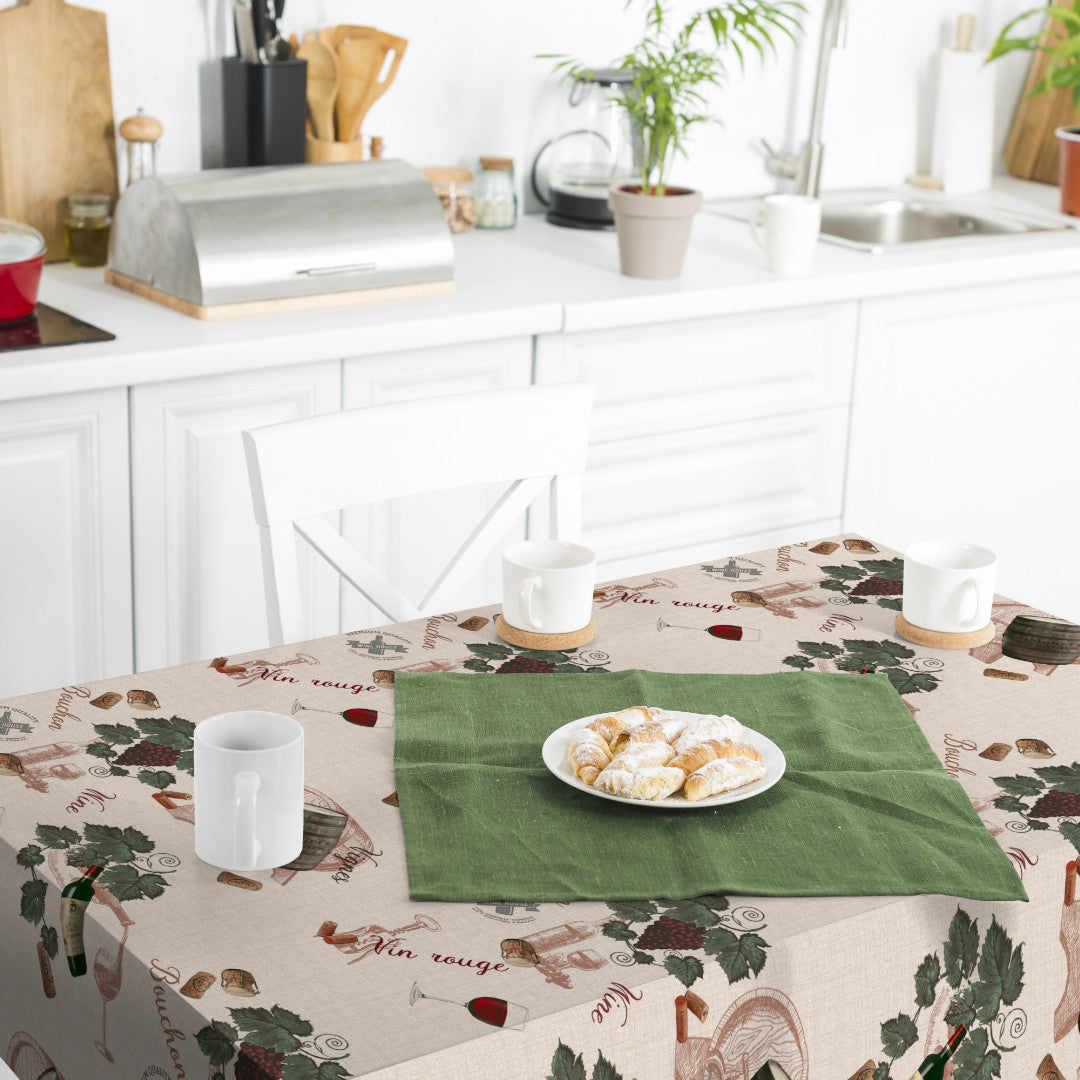 Inspirert av vinmarker og sjarmerende vingårder bringer denne voksduken følelsen av et godt glass vin og en lun baguette rett inn i spisestuen.