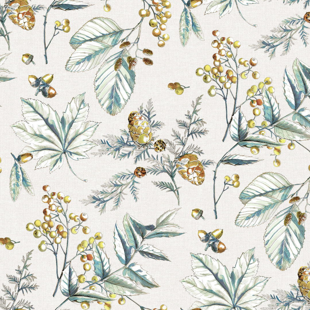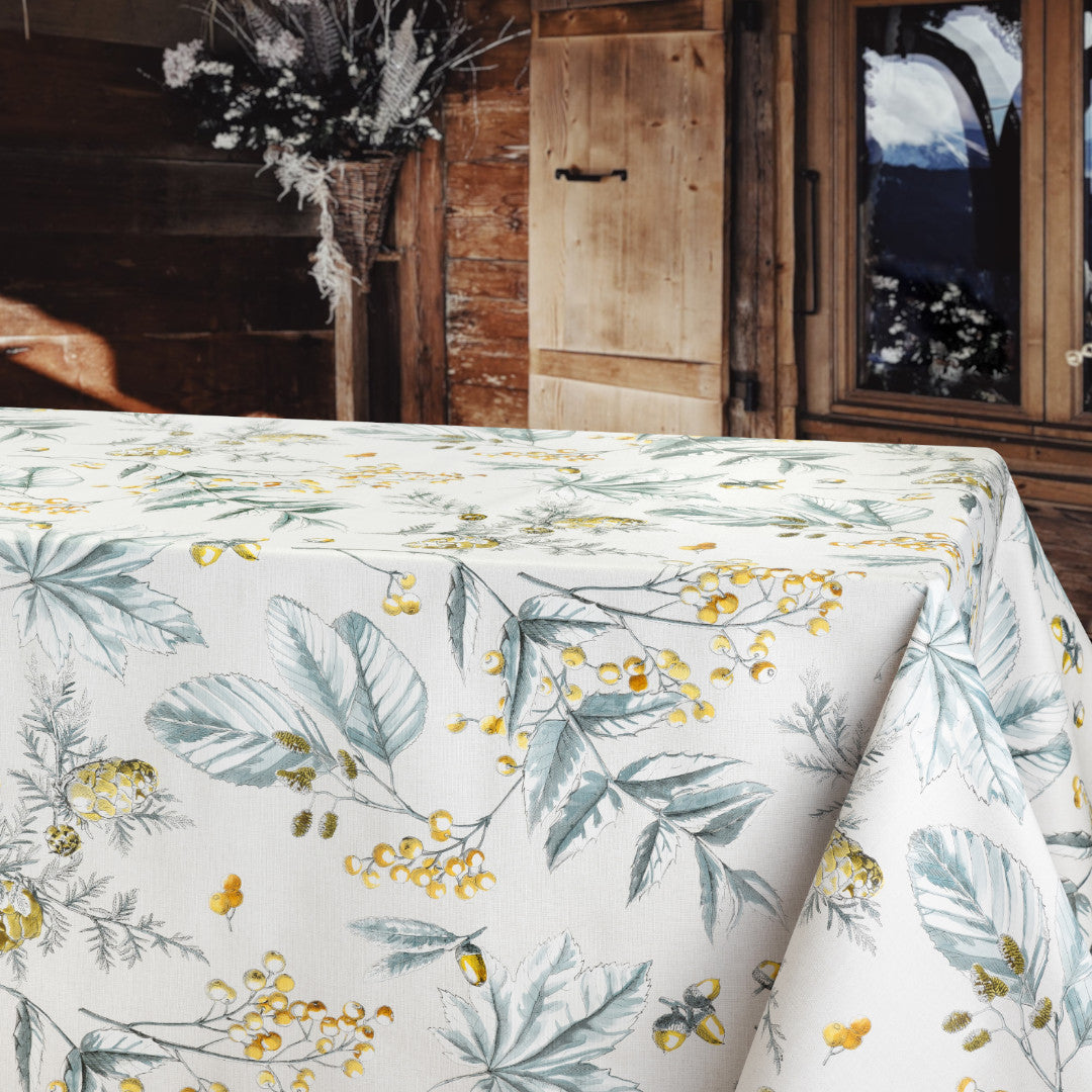 Vinterbotanik Gylden – voksduk med blader, kongler og gyldne bær