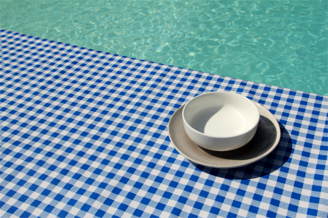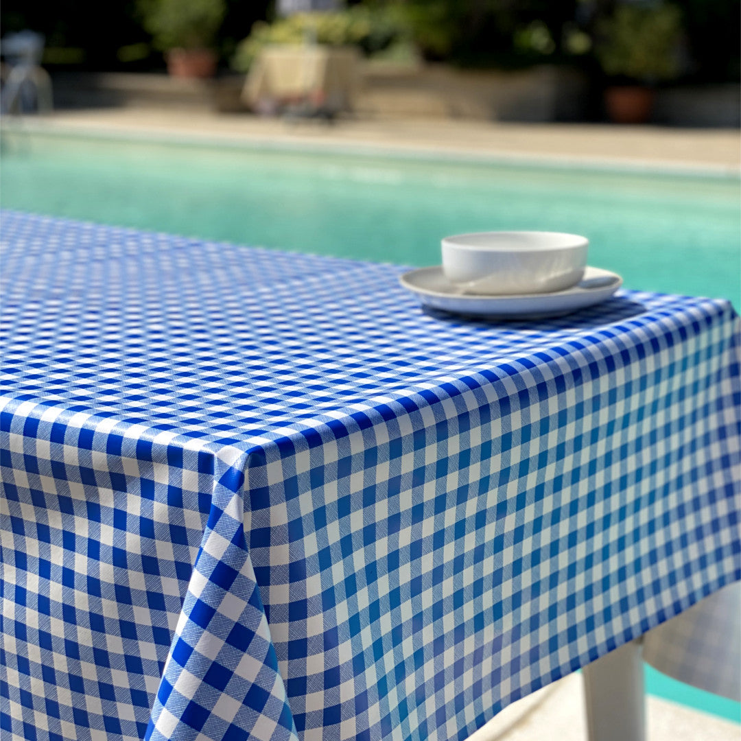 Voksduk med klassiske 1,5 x 1,5 cm ruter – 140 cm bred – blå