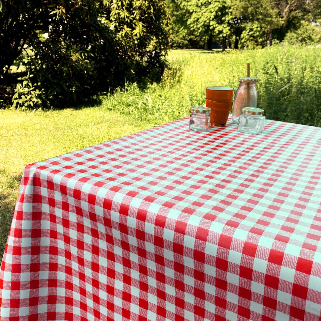 Voksduk med klassiske 1,5 x 1,5 cm ruter – 140 cm bred – rød
