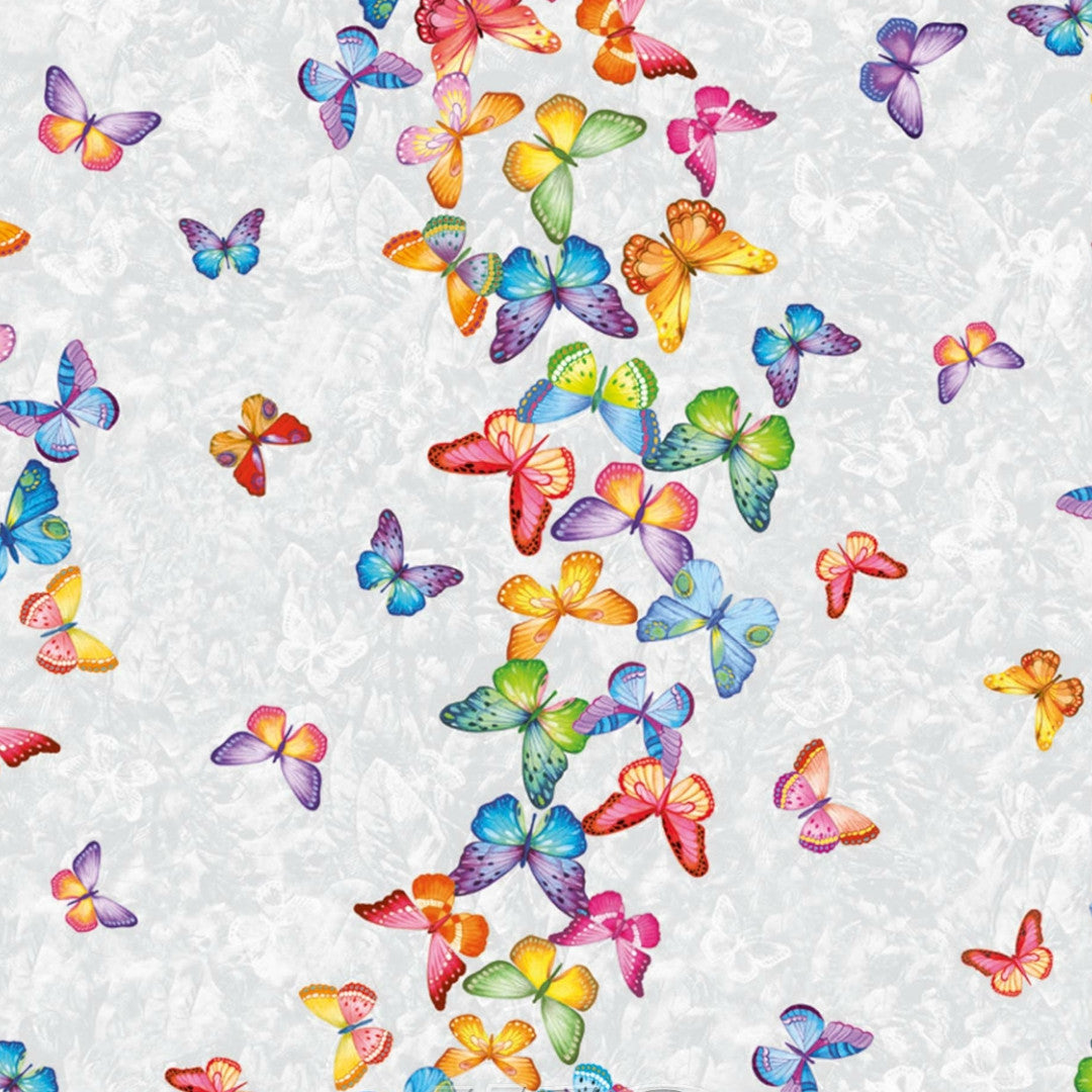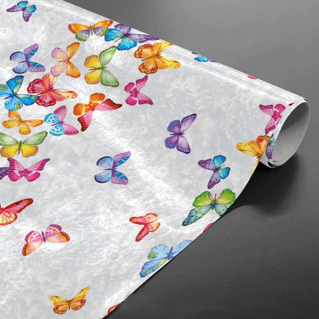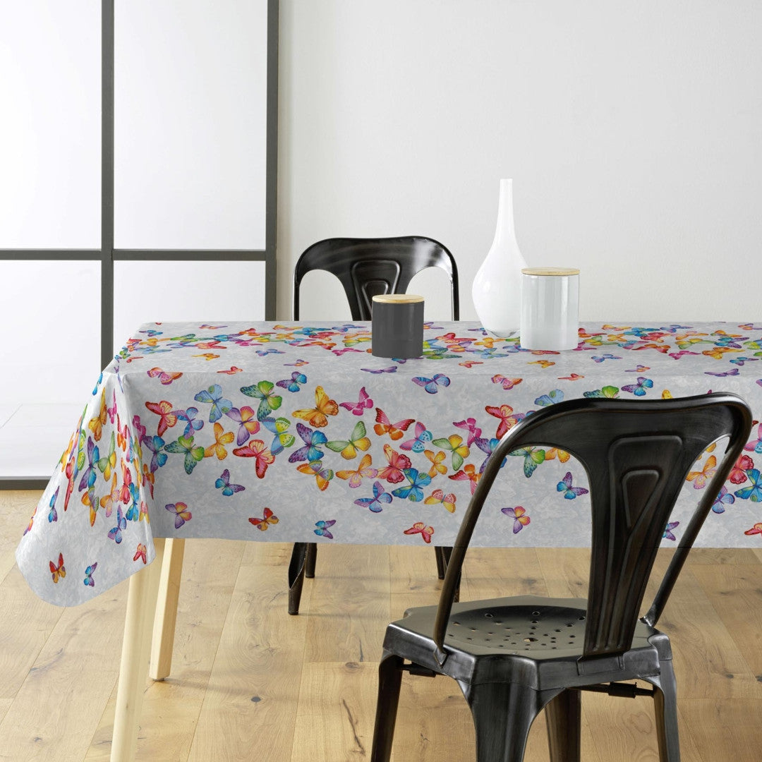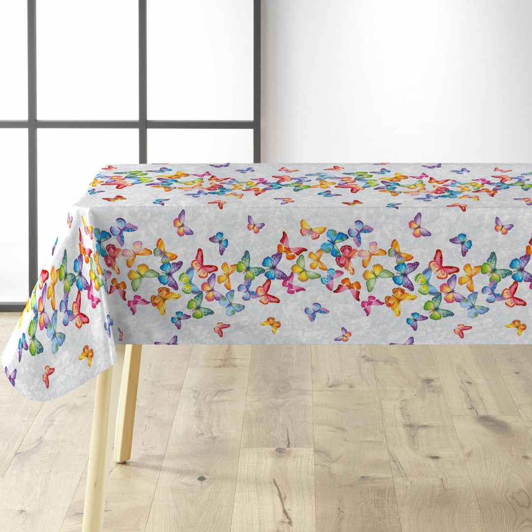 Voksduk med sommerfugler på rad og i mange farger
